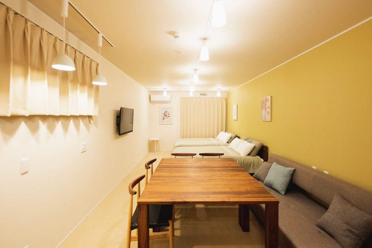 Located just a 5-minute walk from Beppu Station, our hotel offers a quiet retreat tucked away in a small back street— a place where you can stay as if you were living here. Relax in a cozy tatami room and enjoy a peaceful moment. All rooms come with a kitchen, and shared laundry facilities are available, making it ideal for both short and long stays. We sincerely look forward to welcoming you.