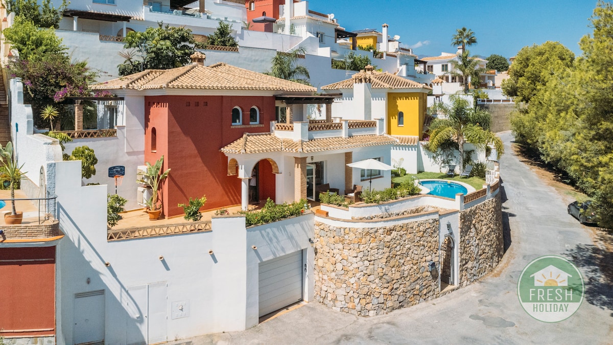 Villa Calypso. Experience the quintessential coastal getaway in this luminous Andalusian-style villa, where every room is a window to the breathtaking 180º vistas of the Mediterranean. Enjoy the sunshine all day! The 3 bedroom house has a private salt water pool with optional heating and terraces with views all around. Enjoy the fully equipped kitchen, bright living area and stylish furniture. Garage and wifi available. Enjoy this beachfront airbnb year-round! 🏝️