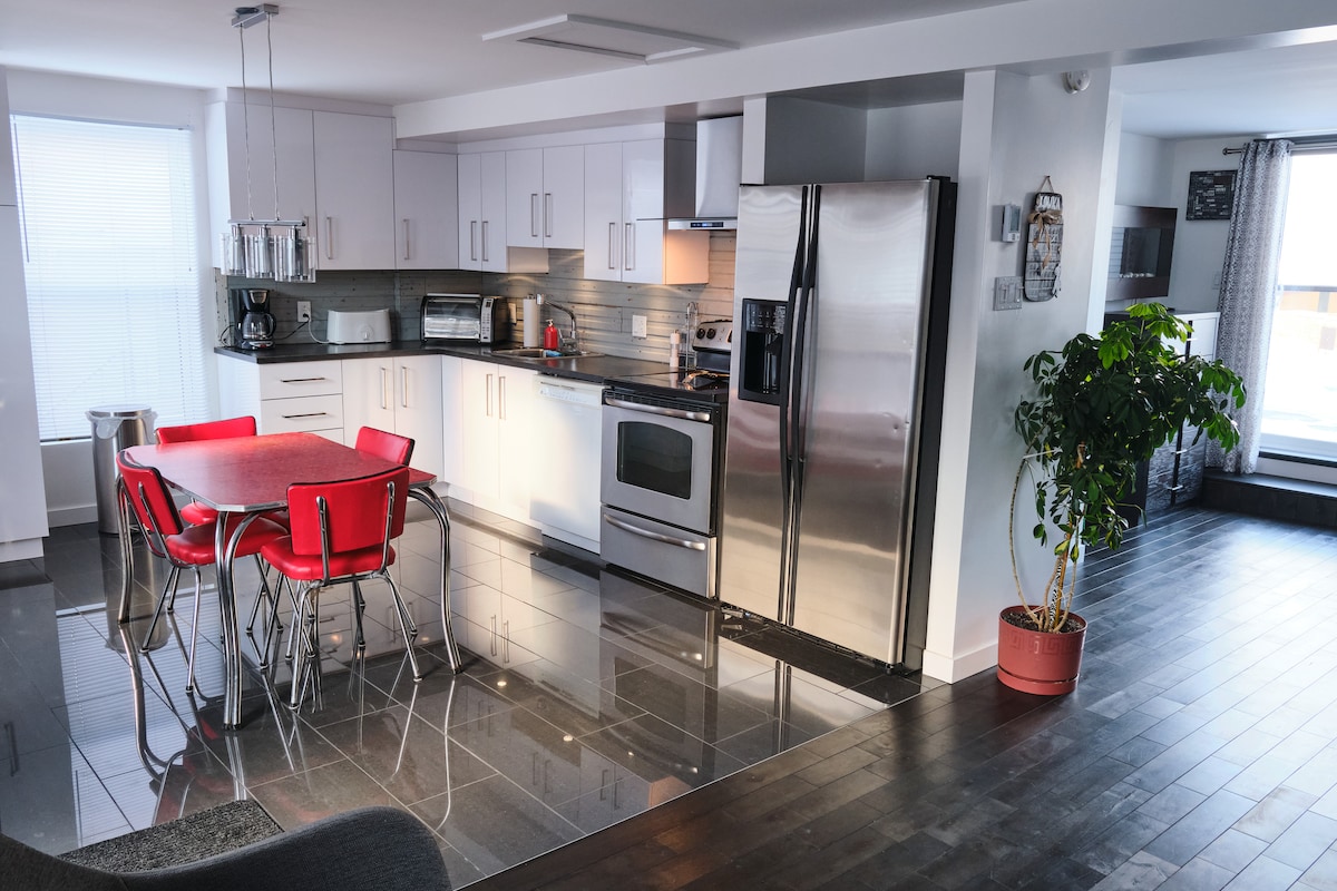 Situado en el centro de la ciudad, en el histórico barrio de Bagotville, nuestra casa centenaria con un estilo actual es el punto de partida ideal para descubrir el Saguenay-Lac-Saint-Jean. Con sus cuatro dormitorios y su gran comedor, siéntese como en casa, con los amigos o la familia y disfrute de los atractivos y servicios cercanos.