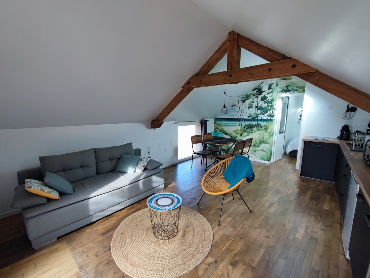 Estudio independiente, clasificado y etiquetado con 2 estrellas, en un pequeño rincón tranquilo, con todas las comodidades necesarias para alojarse durante un fin de semana o una estancia más larga. Equipado por nosotros, tiene una zona de dormitorio (1 cama doble + posibilidad de añadir un colchón adicional o cuna bajo petición), una zona de cocina equipada, una sala de estar, un baño con ducha y aseo) + una pequeña terraza, orientada al sur. A 5 minutos a pie de las tiendas y a 10 minutos de la estación de tren SNCF.