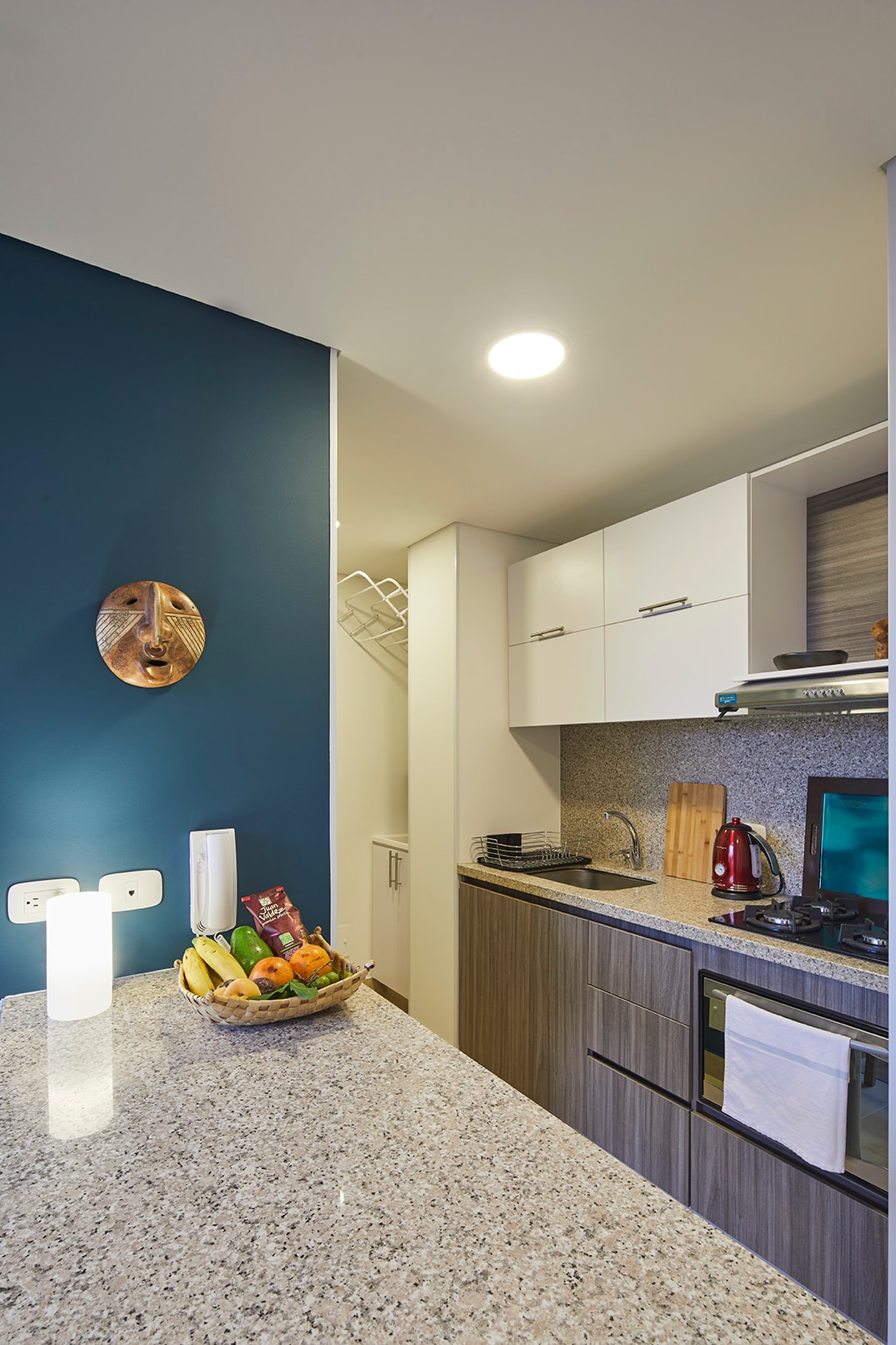 Loft acogedor y contemporáneo que hace parte de Casa Intaglio, un proyecto en el corazón del centro histórico de Bogotá. El apartamento cuenta con todas las comodidades para tener una estancia agradable mientras se visita todos los sitios de interés cercanos como el Chorro de Quevedo, la Galería Santa Fé, y la gran variedad de museos y restaurantes únicos y especiales que la Candelaria tiene para ofrecer. El proyecto cuenta con espectaculares zonas comunes y una terraza con vistas 360 del centro