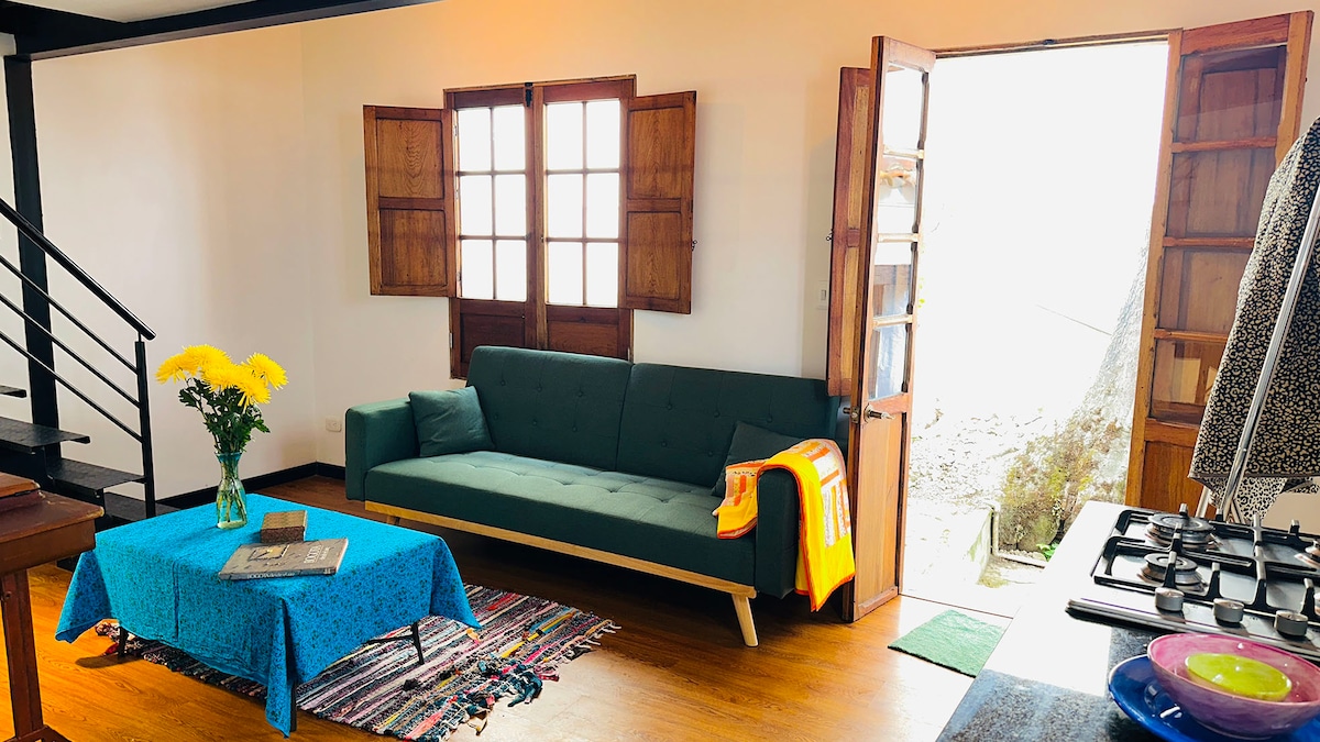 Hermoso apto en la calle mas linda del centro histórico. Romantico, autentico, acogedor, tiene mucha luz natural, temperatura agradable, hermosas vistas 360º a la ciudad y las montañas desde todos los espacios del apto. En el primer piso está la cocina abierta, sala, chimenea y balcón privado. Baño recién restaurado y habitacion con cama doble muy confortable y con ventana hacia la ciudad. Y para completar una linda experiencia, un altillo con vista al atardecer y hamaca para relajarse.