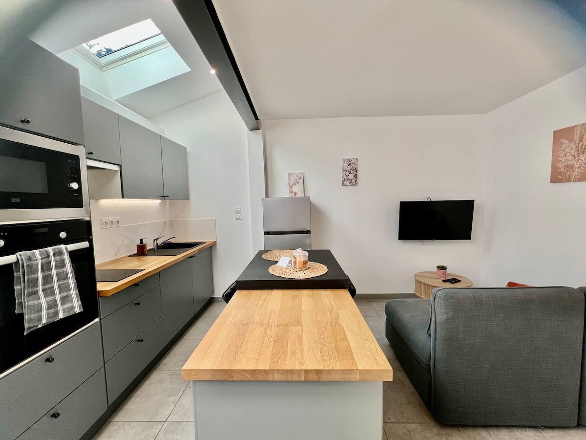 Disfrute de un paréntesis de bienestar en un espacio acogedor, decorado con buen gusto para su comodidad, ideal para relajarse después de un día ajetreado. Está totalmente amueblado y equipado: almacenamiento, lavadora, hervidor de agua, microondas, horno, placas eléctricas, vajilla y utensilios. Se proporciona ropa de cama: toallas, sábanas, mantas, almohadas... Una acogedora zona de noche, una cálida zona de estar con TV y conexión a internet de alta velocidad. En una residencia segura