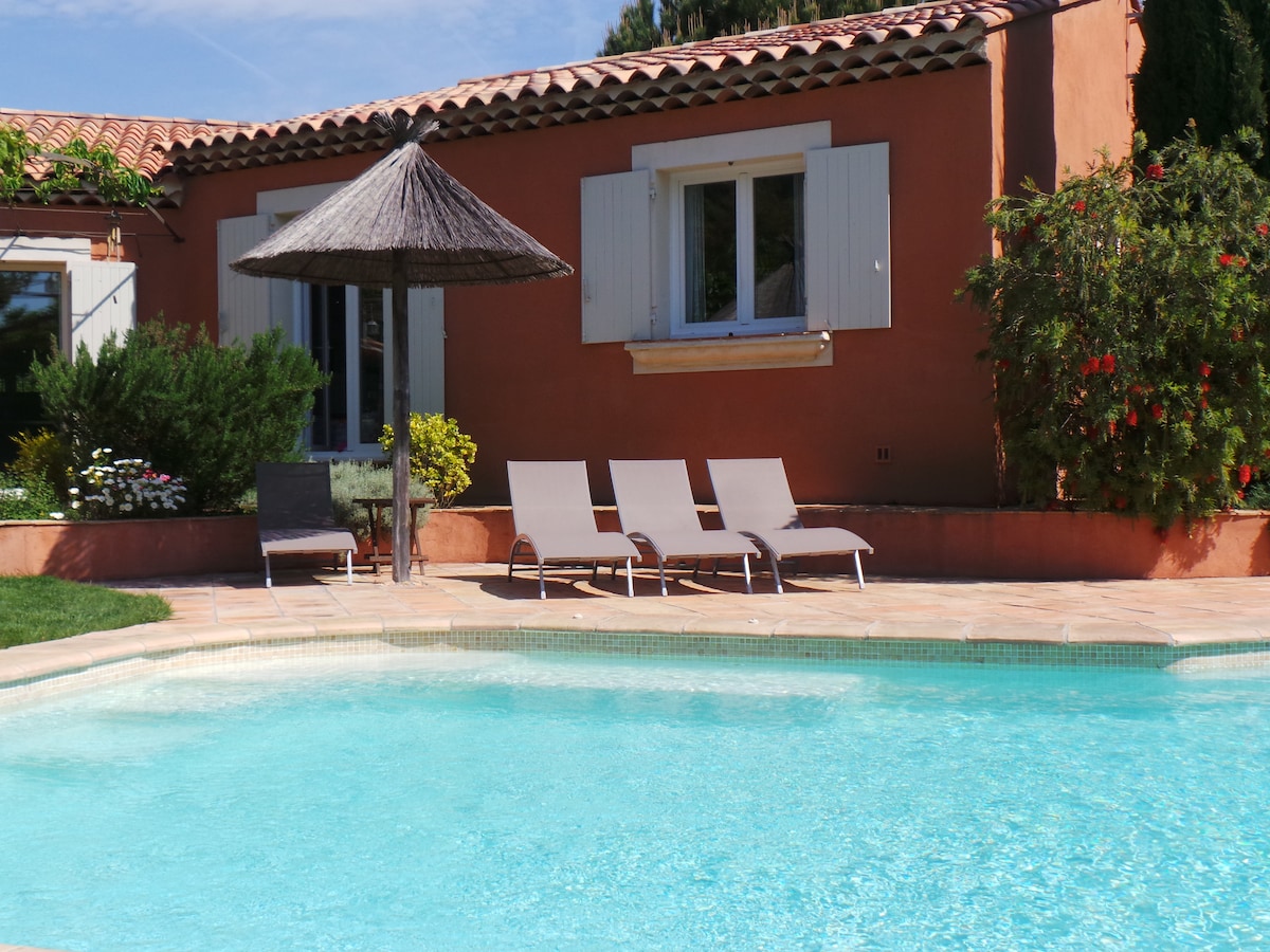 Entre la tierra y el mar, villa con aire acondicionado de 95 m2, sin vecinos con piscina privada solo para los inquilinos. Conexión wifi (fibra), TV, Netflix. Aparcamiento privado: posibilidad de aparcar dos vehículos. Gran sala de estar, cocina equipada abierta a la sala de estar. Dos dormitorios con camas dobles grandes. Un cuarto de baño con bañera. Con una ubicación ideal, cerca de las playas de Hyeres (15 minutos), La Londe les Maures (15 minutos), Bormes/Le Lavandou (25-30 minutos), St Tropez (1 hora)...