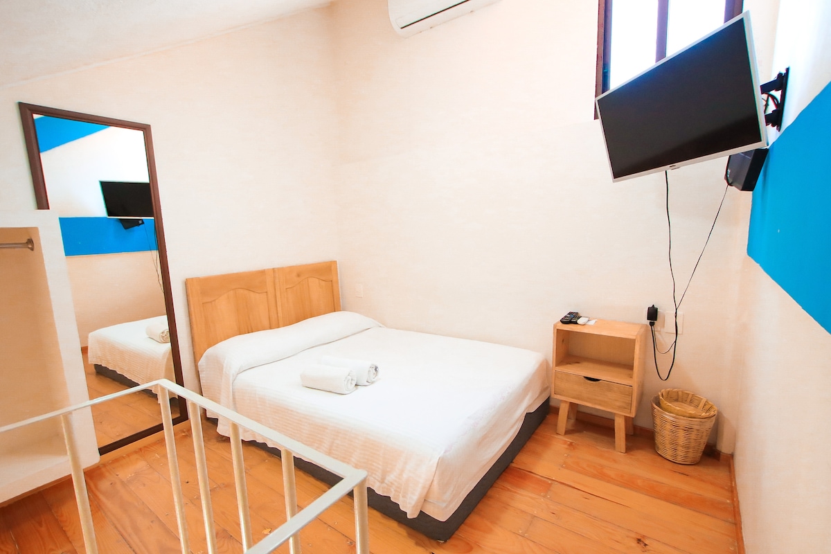 Estamos localizados en el centro de La Crucecita, a una cuadra de Plazas y Restaurantes. Solo a 15 minutos de la playa Chahué donde encontrarás en el camino más restaurantes y una caminata increible. La habitación es cómoda, con Aire Acondicionado y tiene un pequeño balcón. Baño propio y sobre todo un ambiente familiar y muy tranquilo para descansar. Nota: Habitación solo para 2 adultos y 2 niños. La habitación esta en el segundo piso.
