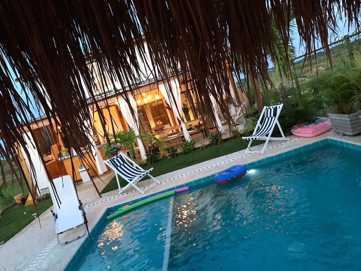 Chalet Axé, una casa finca privada en Turbaco diseñada para grupos grandes y parejas, familias y amigos que buscan descansar, celebrar y reconectar en un entorno natural. Disfruta de piscina privada, amplia zona BBQ, áreas verdes para compartir y espacios cómodos para todos. El chalet funciona con paneles solares, ofreciendo una experiencia más sostenible, eficiente y responsable. A 45 min del centro histórico. Vive una experiencia única en un lugar tranquilo, seguro y lleno de encanto.