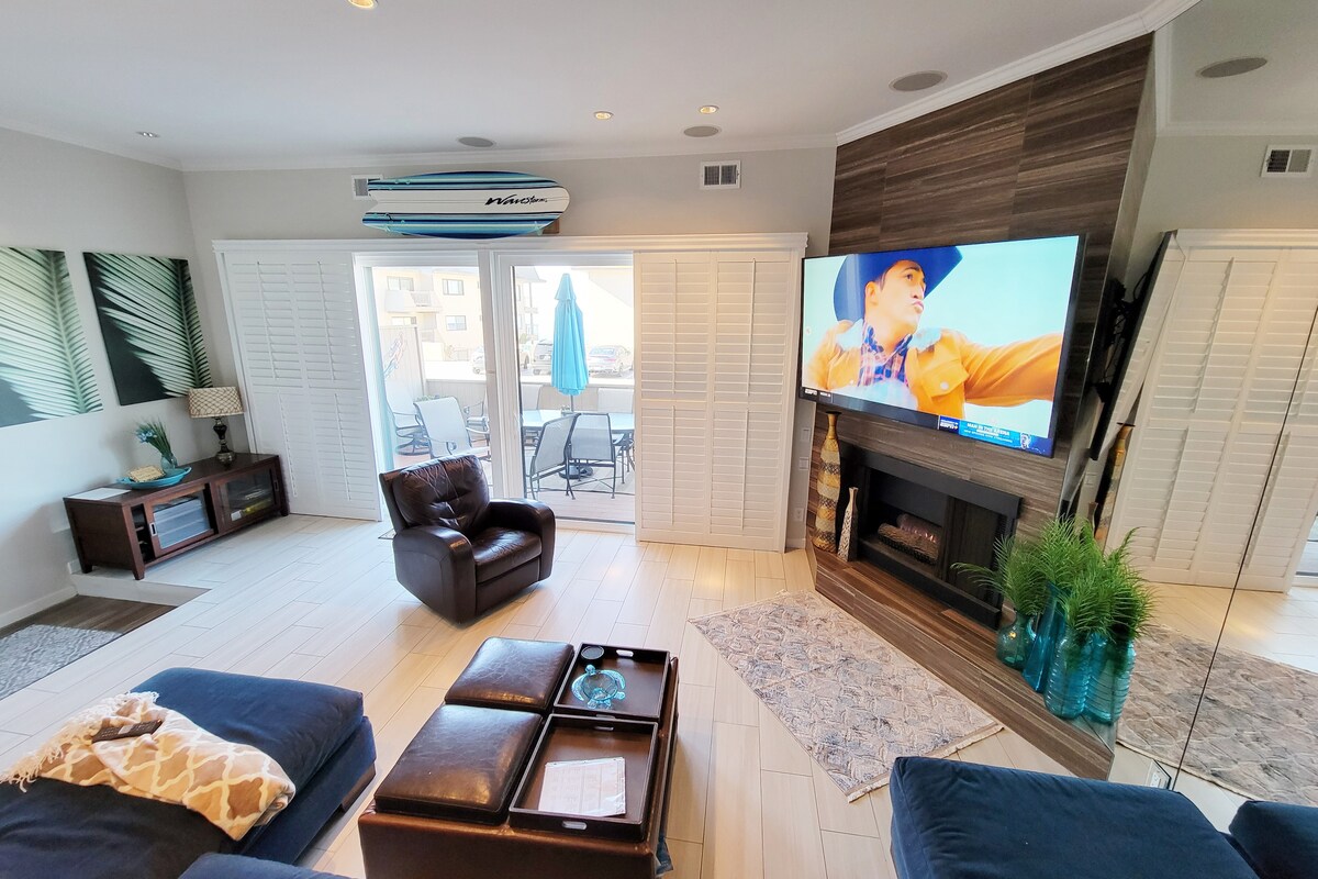 Casa familiar en la playa con aire acondicionado, patio trasero, barbacoa, a 1 manzana de 2 playas