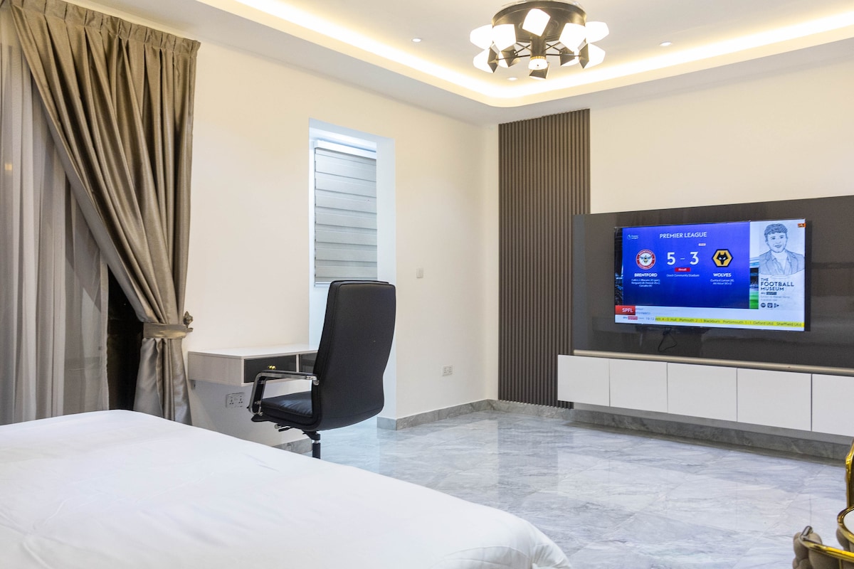 Welcome to Maximilano Luxury Apartments! Located in Adenta, just 25 minutes from Kotoka International Airport, our luxurious three-bedroom, two-story ensuite apartments offer spacious living areas, glass-walled study rooms, modern kitchens, and stunning city views. Enjoy Smart TVs with DSTV, Netflix, free WiFi, air conditioning, and private parking. Perfect for families, groups, or solo travelers seeking comfort, privacy, and easy access to Accra’s top attractions. Book your stay today!