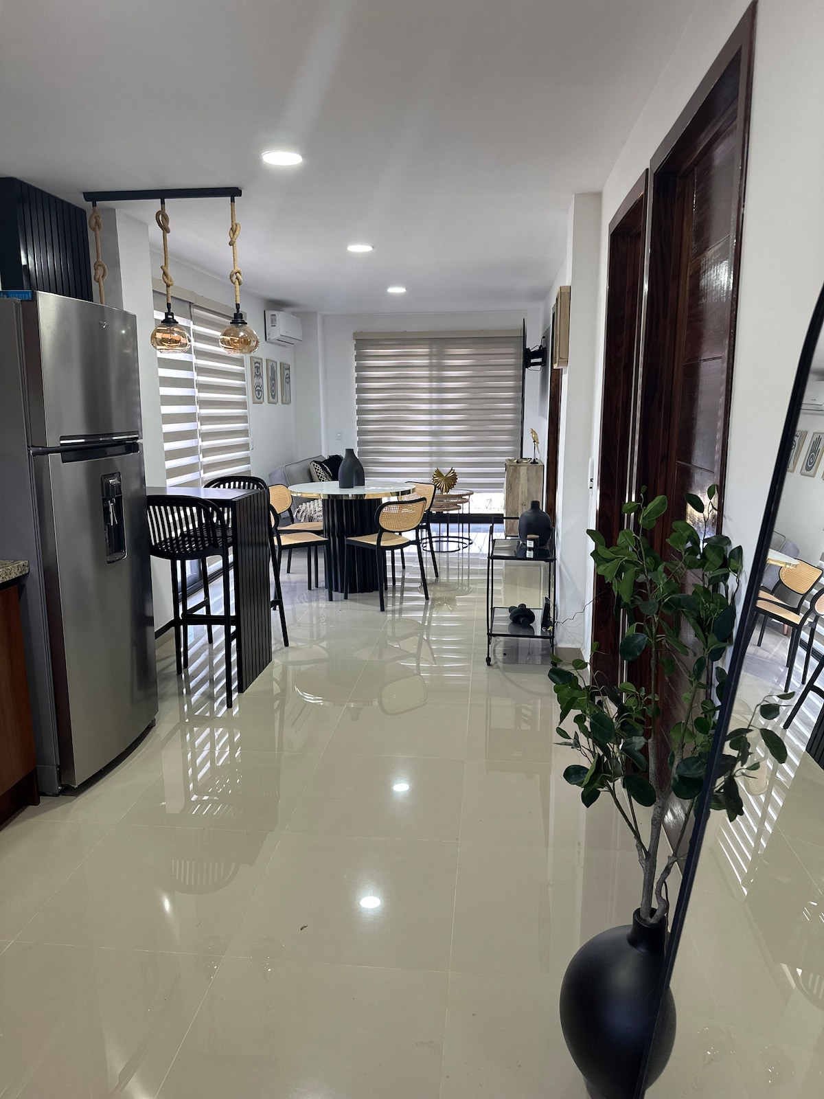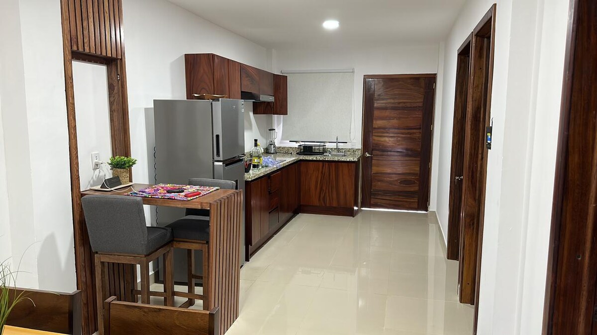 Departamento nuevo y con excelente ubicación, preferente para 2 personas. Cuenta con aire acondicionado en la recamara y Tv con Chromecast para que puedas disfrutar de tus películas de Netflix, ademas cocina equipada y tv de 43 pulgadas en la sala con Netflix incluido. La avenida principal se localiza a 3 cuadras y media, la playa esta a 2 cuadras. El vecindario es tranquilo y la gente amable, encontraras tienditas de abarrotes, un pequeño super mercado, carniceria y tortillería.