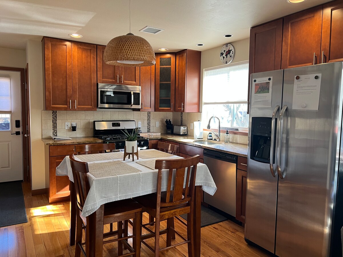 Sunshine Cottage está cerca del centro de la ciudad (a unas 2,2 millas) con muchas actividades para familias. La Reserva Natural del Río Animas/ Oxbow al otro lado de la calle, vida nocturna, transporte público, aeropuerto. Esta es una casa de campo completamente privada con una cocina completa, tres dormitorios (un nivel principal, dos en la planta baja), cama tamaño queen en Master, una cama tamaño king y dos camas individuales en la planta baja, y un sofá cama tamaño queen en la sala de estar. La sala de estar tiene TV directa. La televisión en el dormitorio principal es solo para streaming.