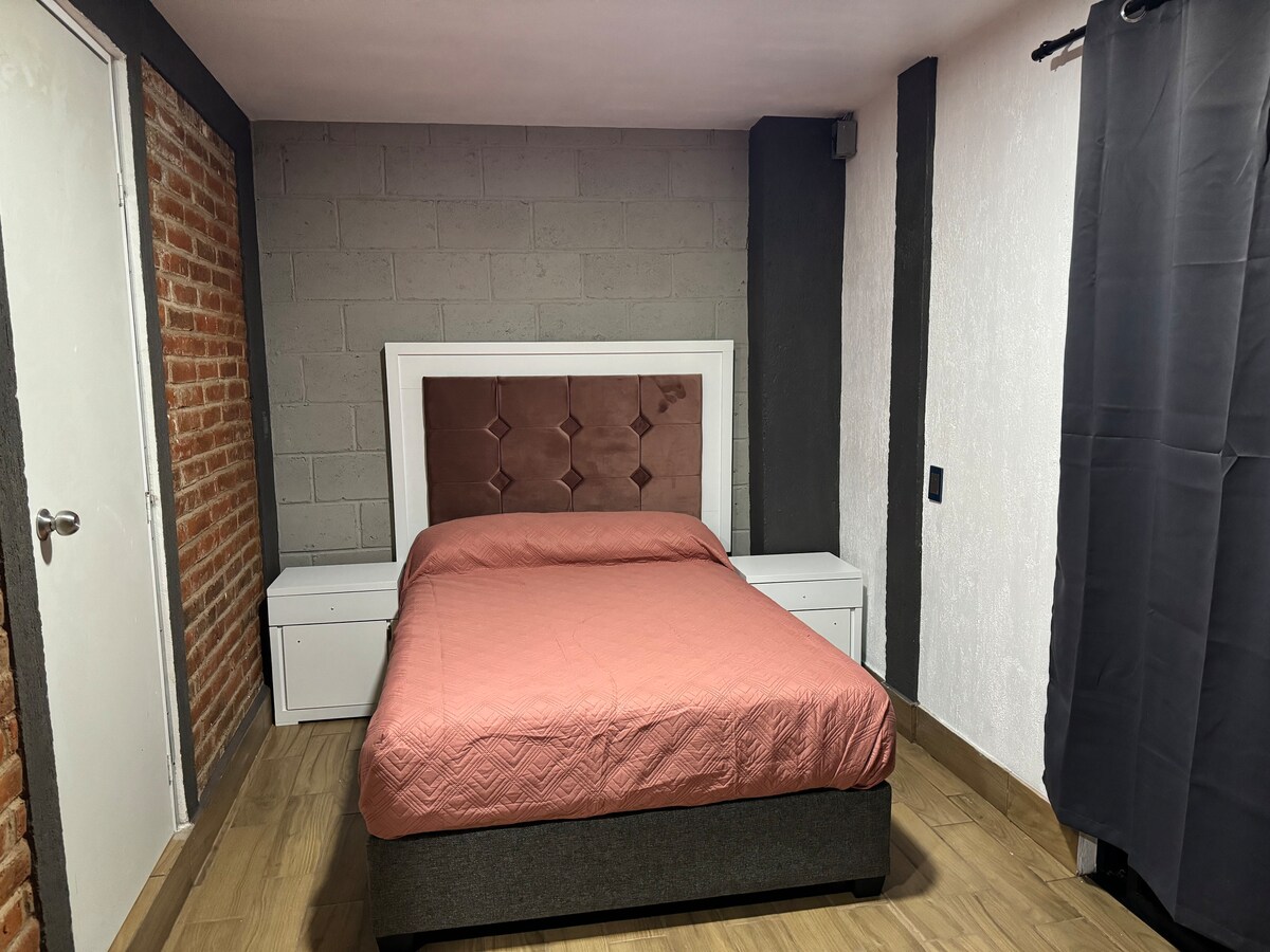 Es un espacio tranquilo, moderno, céntrico, nuevo y acogedor para pasar una excelente estancia corta o larga en la bella ciudad de Zamora El espacio Un Estudio independiente con chapa electrónica para mayor comodidad el cual cuenta con todos los servicios como son AIRE ACONDICIONADO, agua caliente, Netflix, internet de gran velocidad Destacable A tan solo 13 minutos del centro Centro comercial sentura a 10 minutos Bodega Aurrera con Cajero BBVA a 4 minutos Oxxo a 4 minutos
