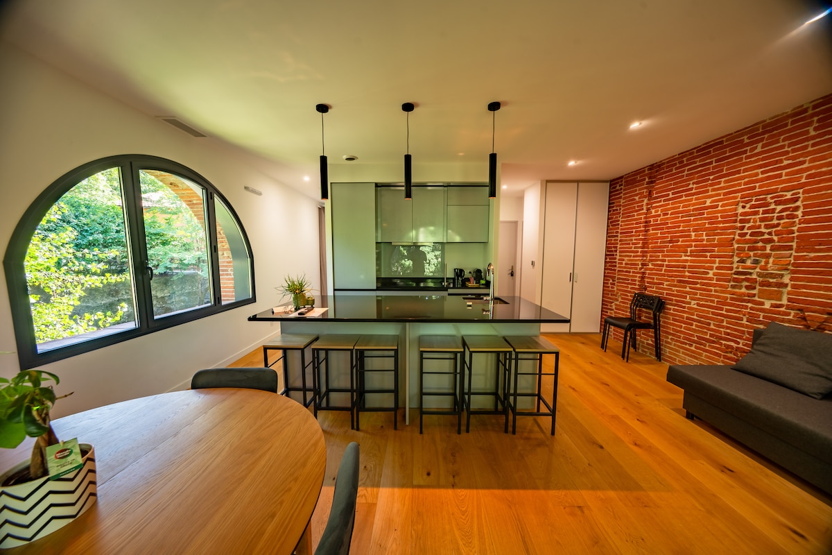 Hermoso apartamento -loft de 180 m2 en 3 niveles ,muy bien equipado,en una gran granja Lauragaise restaurada de forma contemporánea, un gran jardín de 8000 m2.Acceso independiente.Siviendo la temporada acceso a la piscina , la granja se encuentra a 200 m del Camino de Santiago, lugar muy tranquilo.vue a 180 grados. bicicletas disponibles.