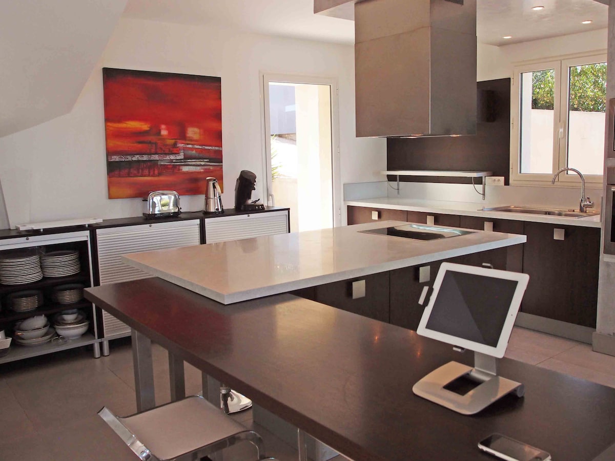 Villa con vistas al mar, piscina, a 5 minutos a pie de las playas