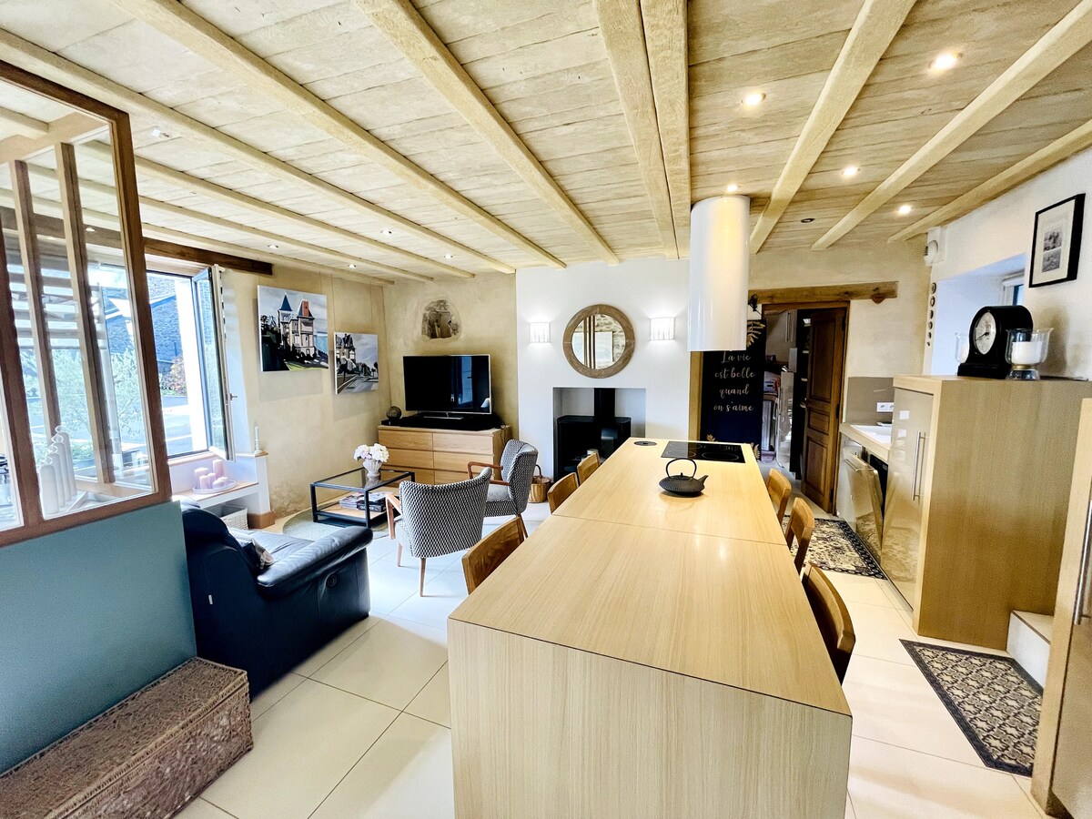 En pleno centro de Dinan, déjate llevar por la elegancia de la antigua Roma. Relájese en una suite de lujo con balneario privado 🛁. Disfruta de la comodidad de una cama queen size con ropa de cama de hotel 🛏️, una cocina equipada, una televisión conectada con Netflix, wifi de fibra y una terraza privada. A dos pasos de la Torre del Reloj y del pintoresco Jerzual. Aparcamientos, restaurantes y tiendas en las inmediaciones. Todo está preparado para una escapada romántica inolvidable ❤️.
