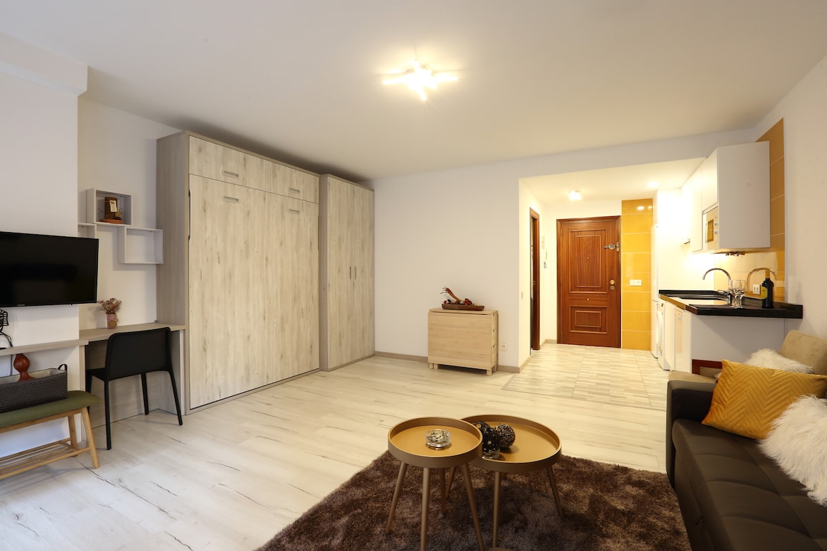 Apartamento nuevo y de diseño. Ubicado en la calle de Portales, en pleno centro del casco Antiguo de Logroño. Junto a la Catedral, el Espolón, las calles Laurel, San Juan, Mayor y la Plaza del Mercado. A 100 metros de 2 parking públicos. Disfrute alojándose en el corazón de la zona gastronómica y nocturna de Logroño en un apartamento cómodo y sin ruidos. El alojamiento consta de cocina abierta,habitación de matrimonio, salón-comedor.Baño con ducha. Posibilidad de solicitar una cuna para bebé.