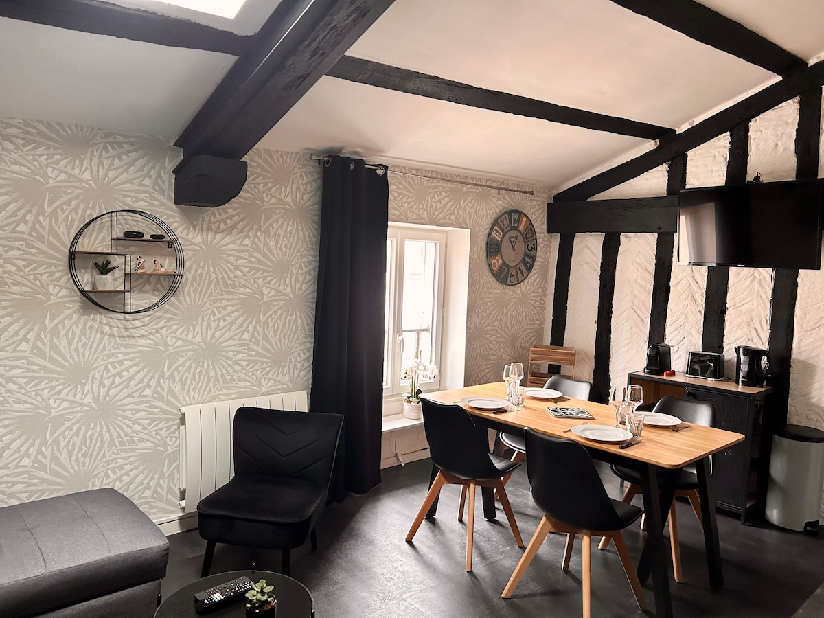 Pequeño nido de 25 m2 ubicado en el tercer y último piso de un edificio antiguo. El apartamento ha sido completamente renovado y pensado con gusto por un decorador de interiores. También encontrarás productos de primera necesidad como jabón, aceite de oliva o cápsulas de café... ¡siéntate y disfruta! ¡A pie o en bicicleta! Si vienes en coche, puedes aparcarlo en Place de Verdun (de pago) y en Chemin des Remparts (gratis). El barrio vive en sintonía con sus salones.