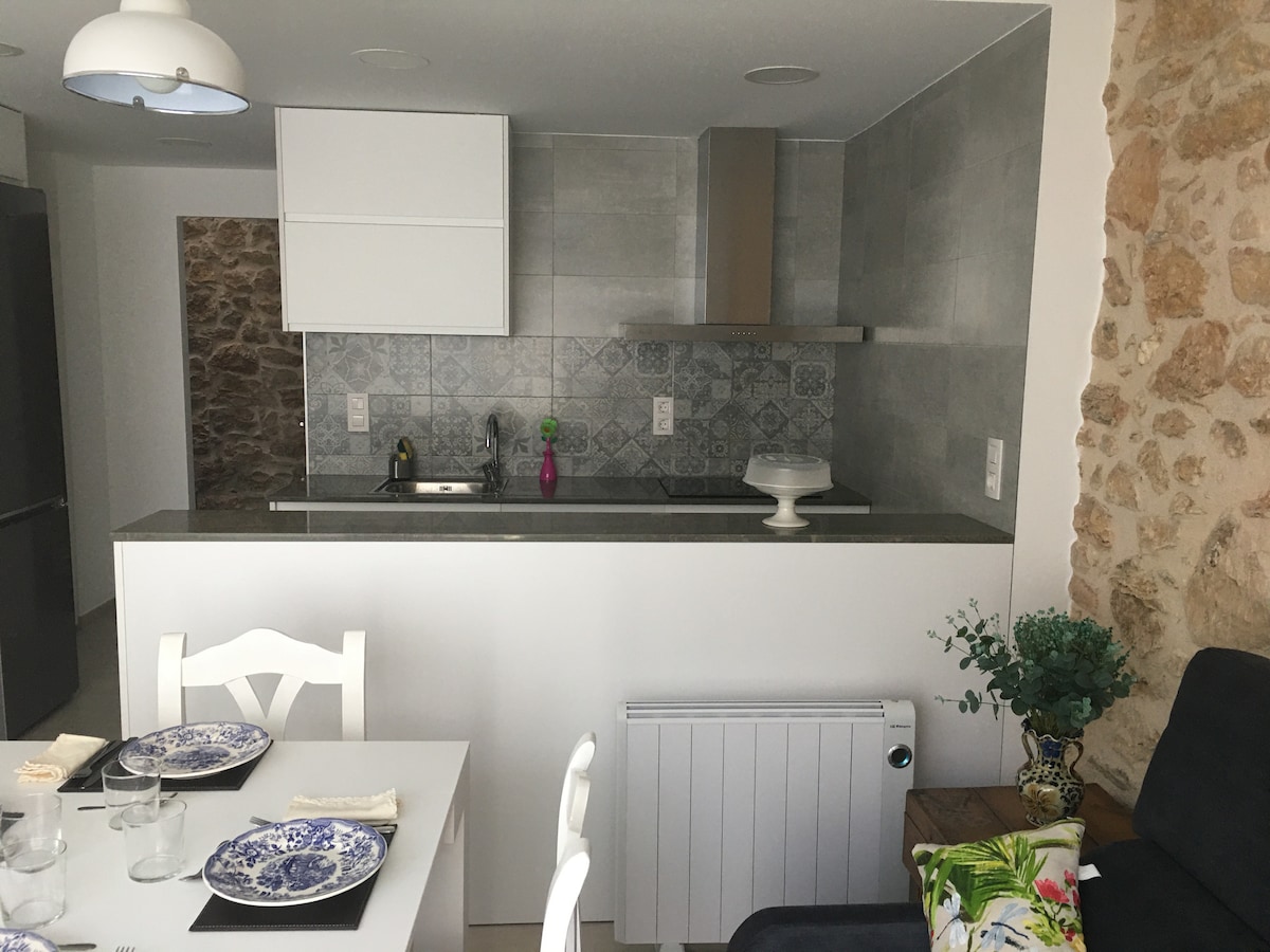 Una casa de piedra muy privada y acogedora con impresionantes vistas a la montaña y a la piscina. PERFECTO SI TE GUSTA EL SILENCIO Y LA NATURALEZA. La zona cuenta con un río, castillo, bodega, montañas y playas mediterráneas. Este precioso estudio tiene todo lo que necesitas para disfrutar de unas vacaciones relajantes. La terraza privada exterior tiene una barbacoa, mesa, sillas y vistas increíbles para disfrutar de una copa de vino por la noche. La Cocina esta totalmente equipada Solo compartirás la zona de la piscina con otros huéspedes. El wifi es excelente el 90 % de las veces.
