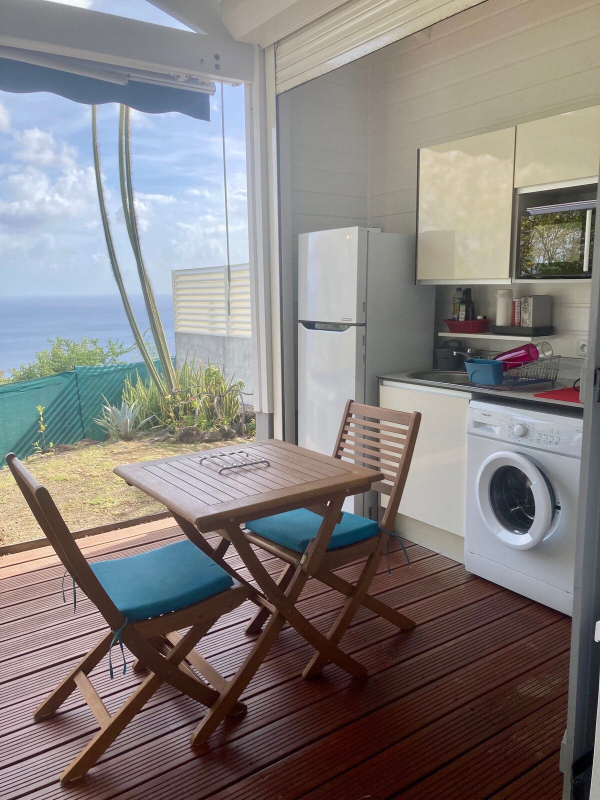 Puntos fuertes: Piscina privada sin vecinos Cocina exterior totalmente equipada con vistas al mar Plaza de aparcamiento frente a la vivienda Sitio reservado exclusivamente a los inquilinos, lo que garantiza un lugar tranquilo, íntimo y relajante. LA PERLA DE CAP se encuentra en la costa norte caribeña de Martinica, conocida entre otras cosas por sus míticas playas de arena negra. La villa Bon Manjé le ofrece todas las comodidades y la tranquilidad necesarias para 1-4 personas.