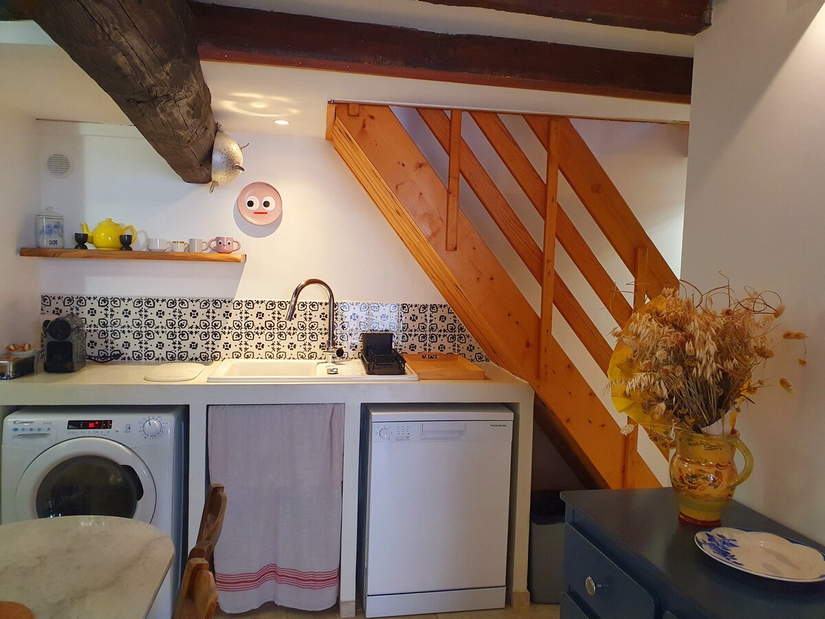 La Bergerie le da la bienvenida en un ambiente cálido y luminoso: un gran salón, una cocina equipada y 2 dormitorios en la planta superior. El cuarto de baño está en la planta baja. Le proporcionamos la ropa de cama y los productos esenciales para el desayuno (té, café, chocolate). Para cocinar, también se proporcionan especias y aceite de oliva. La terraza está rodeada de naturaleza con una suntuosa vista de las montañas. Perfecto para unas vacaciones serenas.