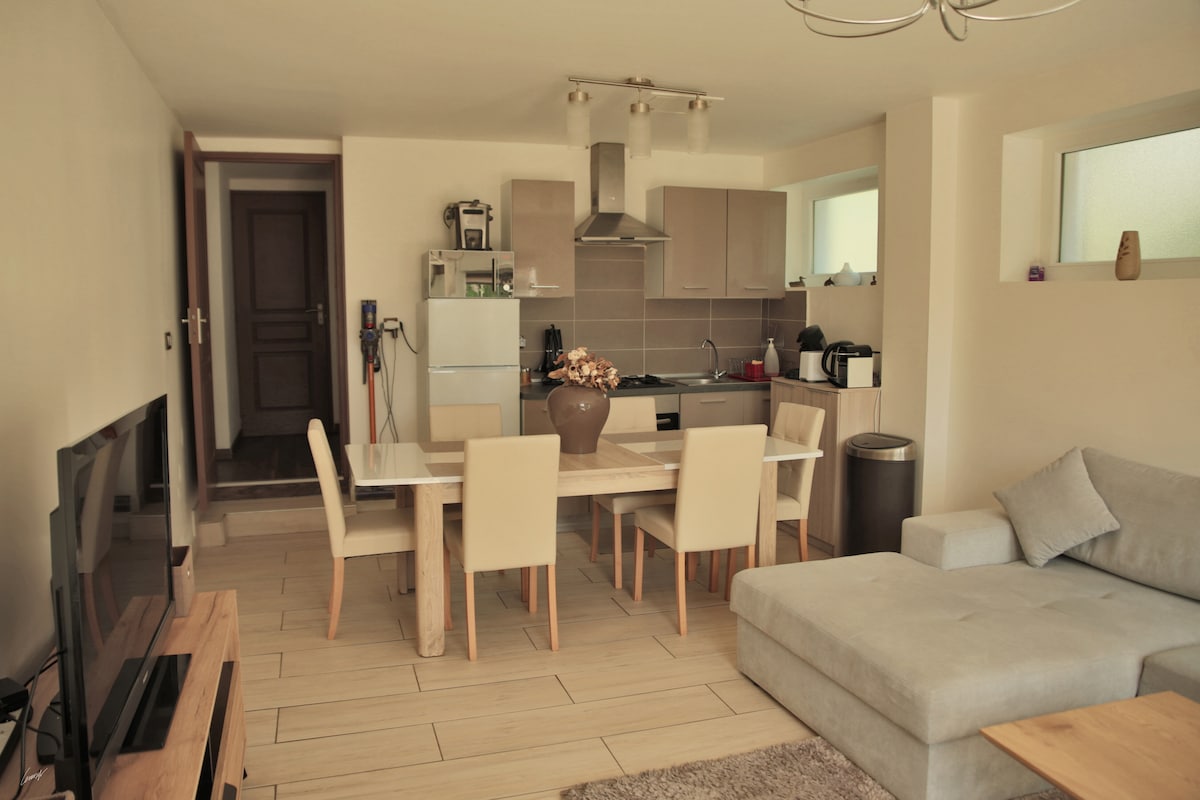 Venga a disfrutar de una experiencia única en nuestro chalet urbano de Annemasse. El piso está en la última planta, lo que le ofrece unas vistas ininterrumpidas de las montañas de los alrededores. Después de un día de senderismo, esquí o trabajo, relájese junto a la chimenea y descanse en el jacuzzi privado. Situado a 5 minutos del Mont-Salève, a 20 minutos de Ginebra y a 50 minutos de las primeras estaciones de esquí.