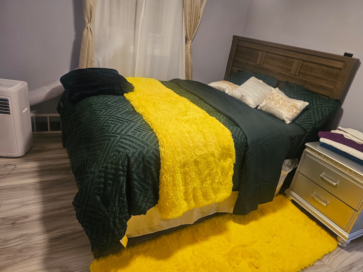 Tranquilo apartamento de tres dormitorios con cocina nueva y todos los electrodomésticos. Fuera de las carreteras principales, pero aún así cerca del estadio Bills y del centro de Buffalo/Canalside. A 30 minutos de las cataratas del Niágara. Hay muchos parques y senderos naturales cerca. Patio trasero grande. Hemos incluido fotos de Bear, nuestro Akita, para que sepas que habrá un perro grande en el sitio/en el patio trasero, etc. Le encanta la gente y los niños y le encanta saludar. No podemos permitir otras mascotas en el sitio debido a Bear.