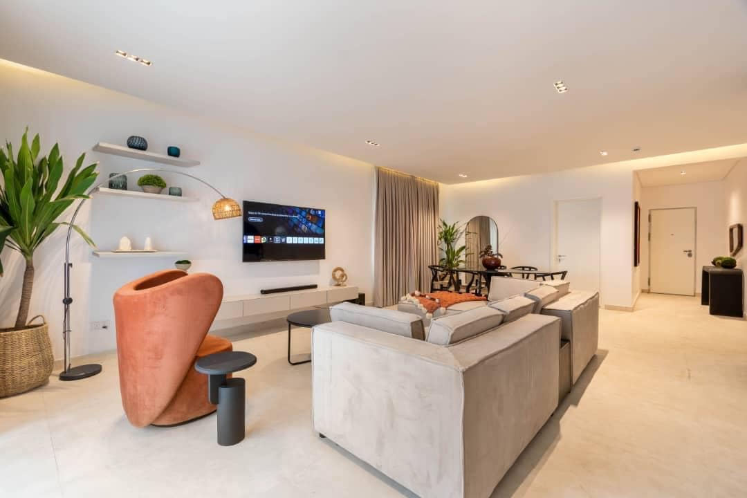 Relájate en nuestro acogedor apartamento minimalista de un dormitorio en el tercer piso que realmente se siente como en casa (pero sin tareas domésticas). Limpieza 🧼 diaria y toallas limpias a petición Barra de☕️ desayuno (selección gratuita de té y galletas) Agua 🚿 caliente y energía fiable (24/7) Cocina 🍳 totalmente equipada con electrodomésticos de primera calidad Televisión inteligente de📺 55 pulgadas con Netflix 🌐 Wifi rápido 🏙️ Terraza 🏋 Gimnasio ❄️ Aire acondicionado. 🚗 Estacionamiento gratuito en el lugar Seguridad 🔐 las 24 horas, 7 días a la semana. 🛋️ Sofá cama multiusos