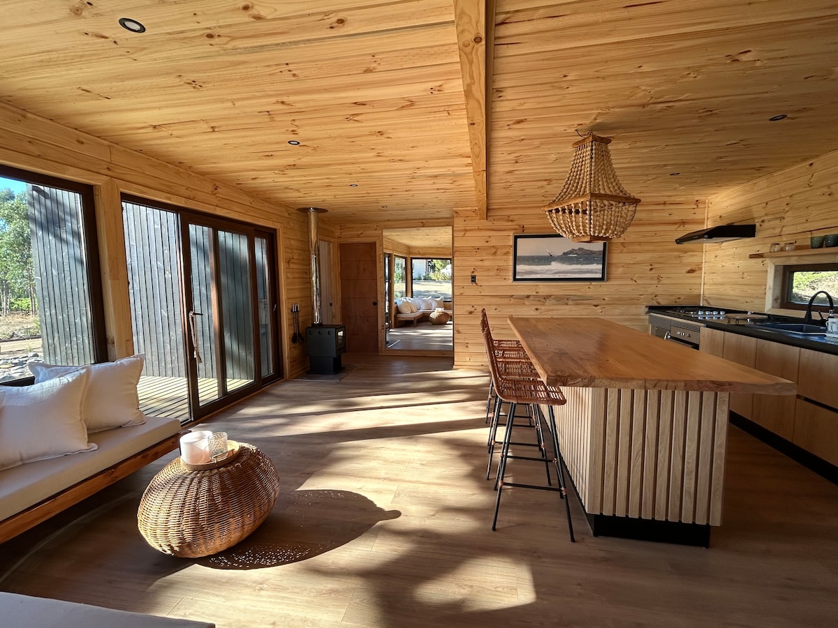 Casa completa a pocos minutos de la playa Las Brisas de Navidad y Matanzas. Entorno tranquilo, privado y con espectacular vista al mar. Casa sustentable para hasta 4 personas, con 2 habitaciones. 1 matrimonial y 1 cama nido. Ideal para escapadas en pareja o familia chica. La energía proviene de paneles solares y el agua de pozo. Totalmente equipada para cocinar, con utensilios y cubiertos. Incluye hot tub con leña para dos días (leña adicional $6.000 por 12 astillas)