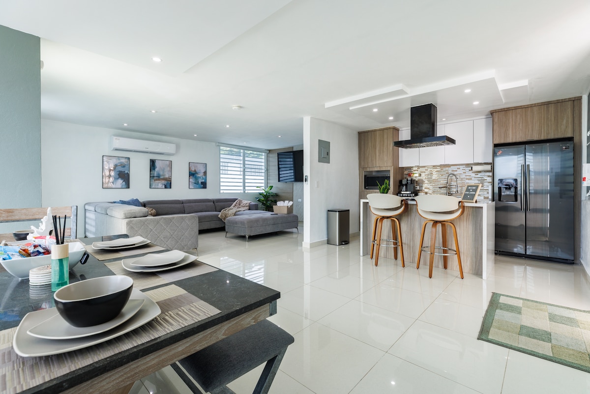 Beautiful and modern space, perfect for a couple or a group of four people. Strategically located five minutes from the airport and 10 minutes from San Juan. Come to Puerto Rico and enjoy the beaches, its people and much more. The apartment consists of a living room with a sofa bed queen size, a beautiful room with a queen size bed, two air conditioning units, two tvs and a beautiful, modern kitchen with all utensils for cook, private parking and balcony for share with your family.
