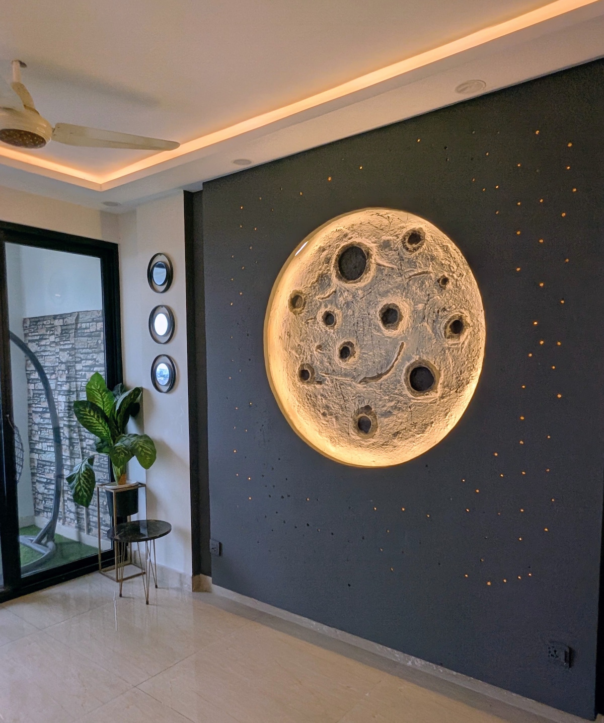 Nuestro apartamento de 1 dormitorio en DHA Fase 5 es donde la elegancia urbana se encuentra con la frescura celestial. Imagina: una pared con una luna brillante para esos selfies nocturnos y una atrevida obra de arte apilada en dólares que grita «energía de personaje principal» Despiértate con vistas al parque desde el columpio de tu balcón privado, disfruta de tus favoritos en el televisor inteligente 4K de 50" o cocina algo estético en la cocina de diseño completamente equipada. ¿Los interiores? Abstractos, elegantes y hechos para el feed. Además, estás justo al lado de los restaurantes más populares de Lahore.