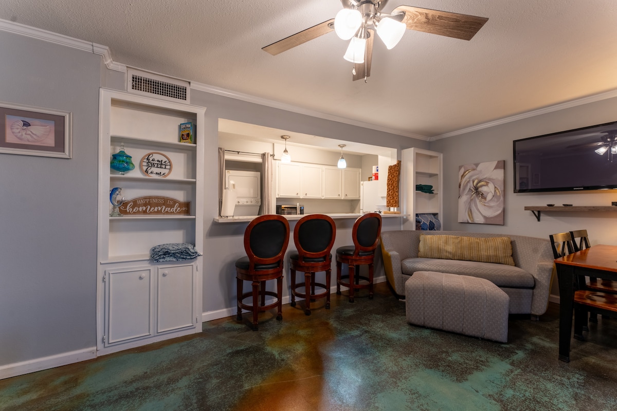 A solo dos manzanas y media de la playa y la bahía de Corpus Christi. Disfruta de un corto paseo hasta el hermoso Cole Park o toma Ocean Drive para un corto viaje al centro de la ciudad. Dirígete hacia la isla del Padre en la otra dirección. Perfecto para visitar al personal médico y del hospital. Este es un acogedor apartamento bungalow privado, perfecto para una sola persona o pareja, ubicado en un barrio histórico y tranquilo. Casa de huéspedes completa con entrada privada, baño completo, un dormitorio y sala de estar, incluida una pequeña cocina americana.