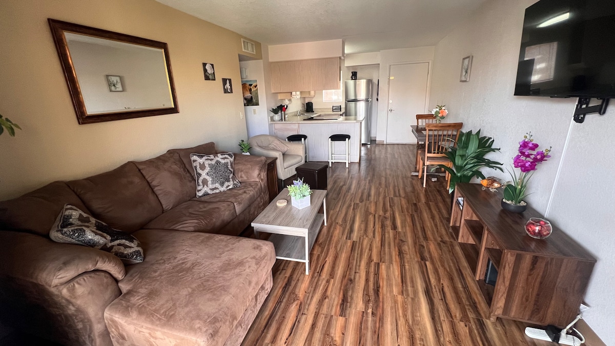 A una milla al sur del precioso centro de Lake Havasu, te registrarás en una minisuite en Havasu Dunes Resort. Cuenta con una pequeña cocina (mininevera/cocina americana), cama tamaño queen con puerta para mayor privacidad y sofá cama en la sala de estar. El personal del centro vacacional está disponible de 7:00 a 22:00 h. En el momento del registro, deberás presentar un documento de identificación y una tarjeta de crédito para una retención por imprevistos. Las fotos son del centro vacacional en general, la habitación que se te asigna se hace al momento del registro.