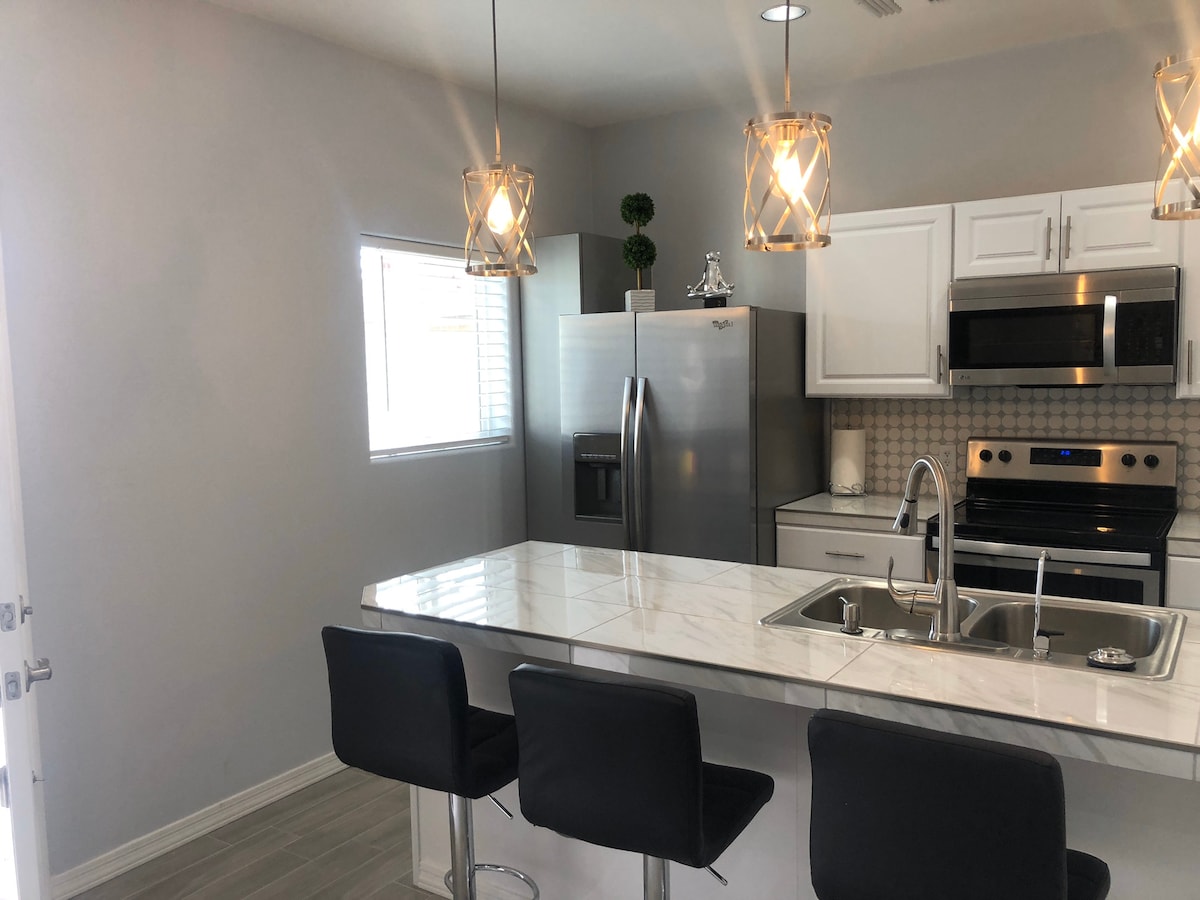This modern, peaceful, and private casita has all the luxuries and comforts that you would expect from a full-size house. While the inside amenities (full kitchen, bathroom, laundry room, etc. ) make this an amazing find, it’s the outdoor space that sets it apart from anything else! With a private yard, fire pit, with seating area, plus a covered patio with barbecue and dining table, this casita will have you feeling cozy, calm, and ready to relax in Lake Havasu.