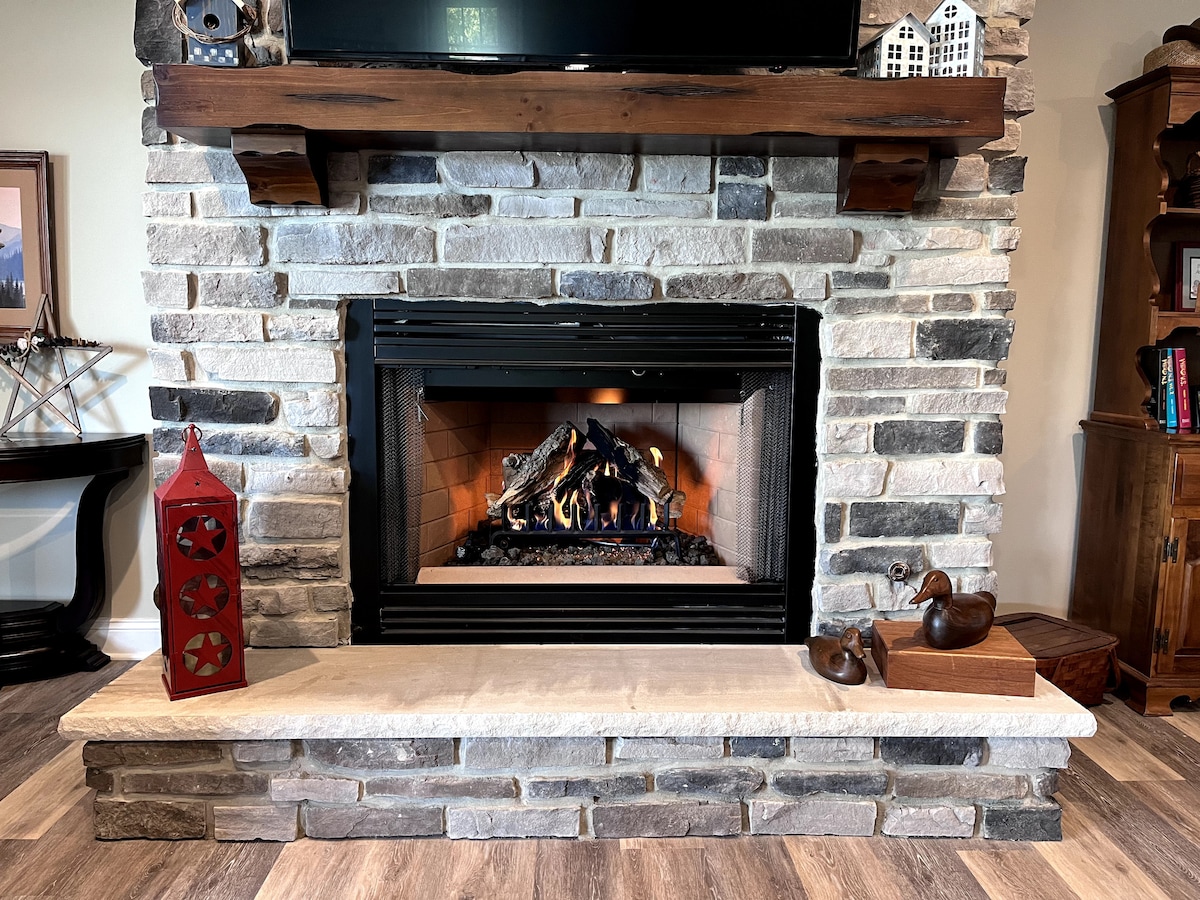 Nuestra propiedad cuenta con vistas inigualables del lago Greenwood y las montañas más allá. Nuestro jardín privado cuenta con una cascada estacional que cae en un estanque de lirios con peces y ranas. El patio sombreado ofrece vistas panorámicas y una parrilla de gas. Durante los meses de invierno, después de esquiar en las pistas cercanas, relájate en la bañera con patas o retírate al acogedor ambiente de nuestra sala de estar, con techos de madera a la vista, una acogedora chimenea, un televisor inteligente, un tocadiscos y juegos de mesa.