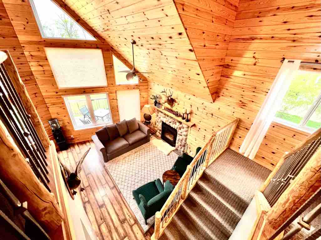 ¡Hermosa cabaña de 5 dormitorios y 3 baños completos en el agua con una playa privada! El espacio cuenta con una sala de estar principal luminosa y espaciosa y de concepto abierto con vistas al agua. Un sótano totalmente terminado cuenta con actividades como ping pong, futbolín, una máquina recreativa personalizada recién añadida, máquina de skeeball, chimenea de gas y bar con fregadero. La cabaña cuenta con una terraza frente al agua y totalmente cubierta. LICENCIA DE ALQUILER DE CORTA DURACIÓN NO. GSTR-25-035