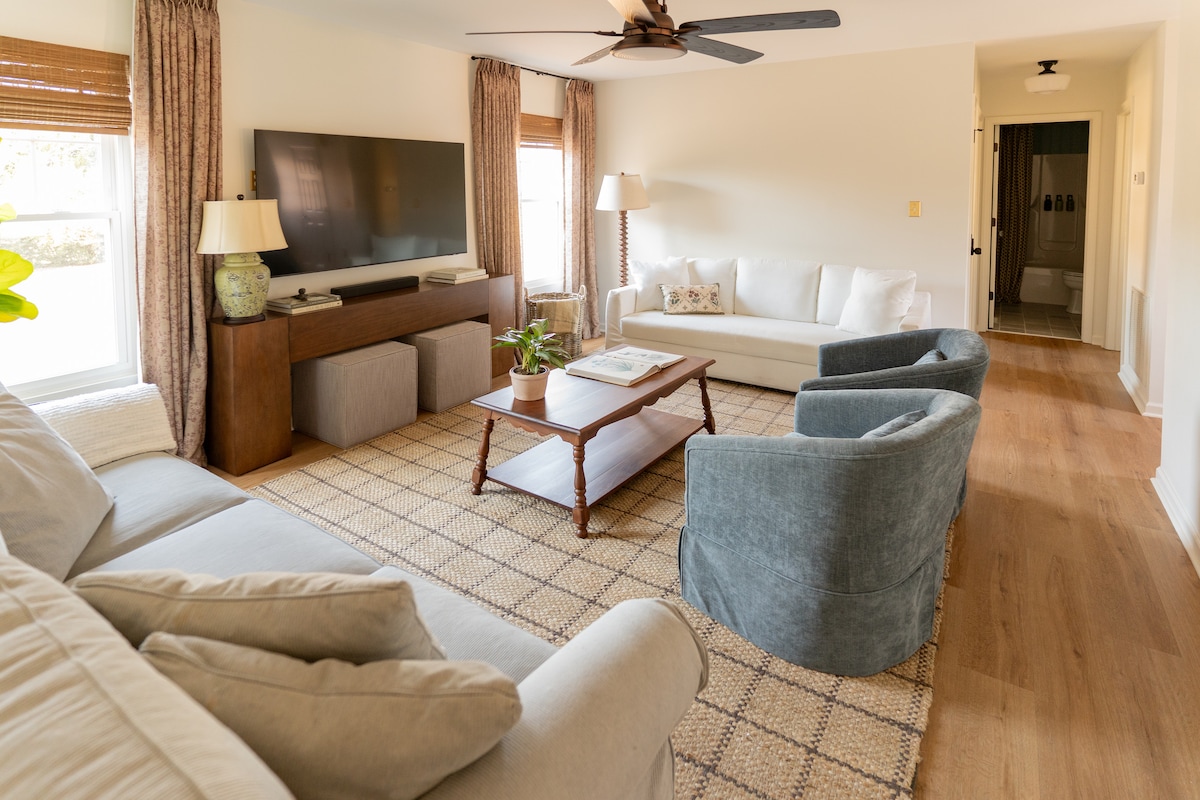 Tan pronto como te registres en esta suite de 2 dormitorios y 1 baño, te recibiremos con un mural inspirado en Matisse encargado por el artista callejero de Charlotte, «Cheeks». Los techos altos y los acabados y servicios de alta gama crean una experiencia de vida lujosa. Hay kayaks de cortesía disponibles para flotar por el río Southfork, así como bicicletas para ir al famoso parque Goat Island de Cramerton y a los restaurantes locales. Después de explorar, puedes volver y crear más recuerdos alrededor de la hoguera, relájate
