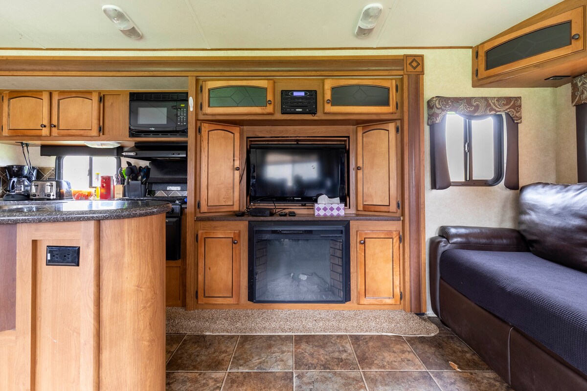 Bienvenido a Trendy Trent River Retreat, tu oasis lejos de casa con todos los servicios que quieres y necesitas. A solo 1,5 horas de Toronto. Disfruta de este lujoso loft RV con capacidad para 8 personas. Tiene un diseño fabuloso con cama tamaño king, loft con 2 camas individuales y sofá convertible en cama tamaño queen. Baño grande con ducha y claraboya. Tiene acceso a Rice Lake, que es famoso por su excelente pesca y navegación. Las comodidades incluyen cancha de baloncesto, cocina al aire libre, kayaks, bicicletas y un gran pozo de fuego frente al lago.