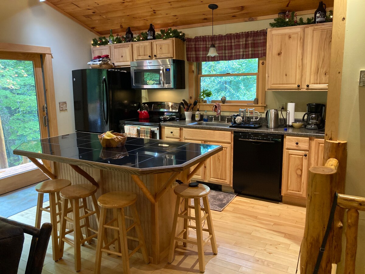 ¡Perfecto para parejas y grupos grandes! Cabaña acogedora + dependencias. A 10 minutos de la estación de esquí, piscina en el lugar y acceso a la pesca, jacuzzi de cedro y sauna, futbolín, senderismo, restaurantes accesibles a pie, muebles boutique. La cabaña de madera en el campamento de Warner es una obra de arte. Esta propiedad consta de una cabaña de madera a medida de 3 dormitorios y 2 baños, una cabaña estudio con cama y baño adicionales, además de una cabaña para dormir adicional (una encantadora cabaña adosada cerrada, con vistas a un arroyo).