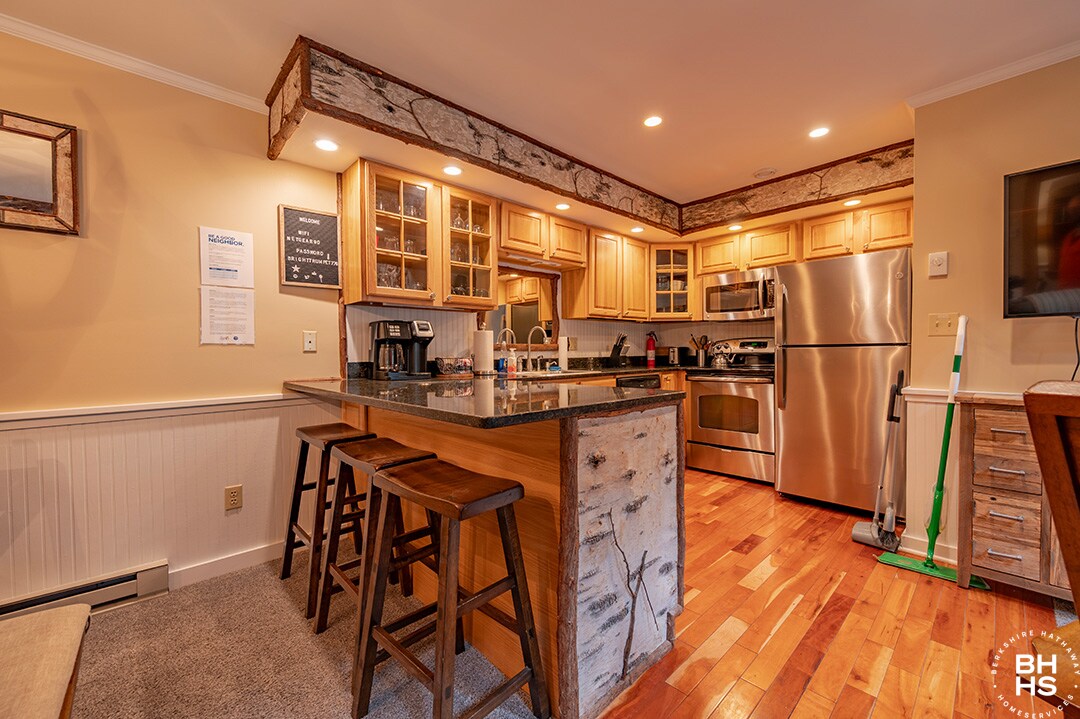 Apartamento de estilo Adirondack en River Road, Lake Placid, ubicado a 10 minutos del pueblo de Lake Placid y a 10 minutos de Whiteface Ski Resort. El apartamento está recién amueblado y detallado con un toque rústico. Se encuentra en la planta baja de una residencia y tiene una entrada privada. Hay 1 dormitorio, 1 baño y una sala de estar de concepto abierto con una cocina completa con encimeras de granito y electrodomésticos de acero inoxidable. El baño tiene una ducha de azulejos y hay calefacción por suelo radiante en todas partes.