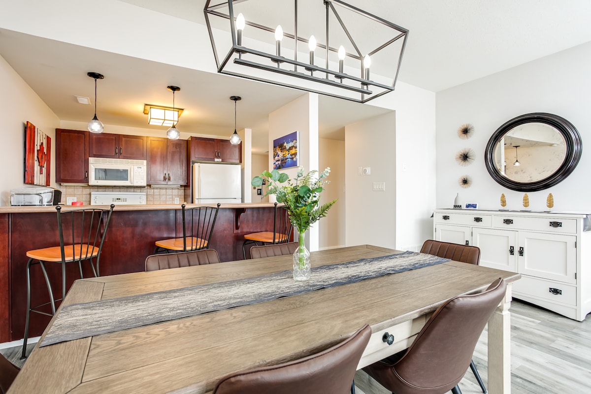 Escape to our spacious, furnished, 1 bedroom condo with a walkout balcony located in Friday Harbour All Seasons Resort community. Enjoy this season with access to walking trails, boardwalk festivities, live music, events and weekend markets on the boardwalk. Queen bed + pullout Queen sofa sleeps 4. Two Smart TVs, High Speed WiFi. Relax on furnished balcony overlooking our private pool, courtyard & beautiful sunset. 1 Free Parking, Electric BBQ, In-Suite laundry.