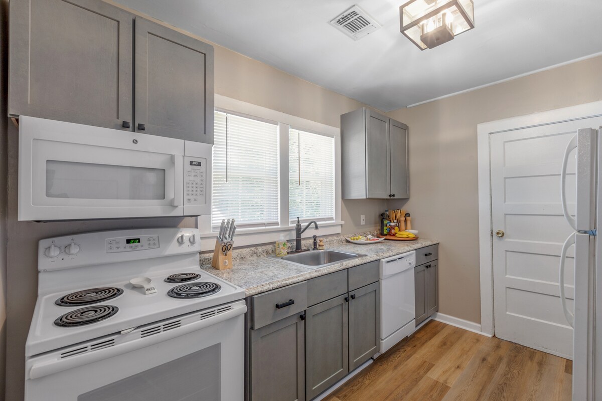 Encantador alojamiento de los años 40 recién renovado, perfecto para tus visitas a Tallahassee. A pocos pasos del campus de FSU. (Sí, ¡puedes ir caminando al estadio!) 3 dormitorios, baño renovado + cocina - superlimpio, cómodo y práctico. También incluimos servicios adicionales para que tu estancia sea más cómoda, recomendaciones sobre todos nuestros lugares favoritos locales y consejos para asegurarte de que tu visita a Tallahassee sea excepcional.