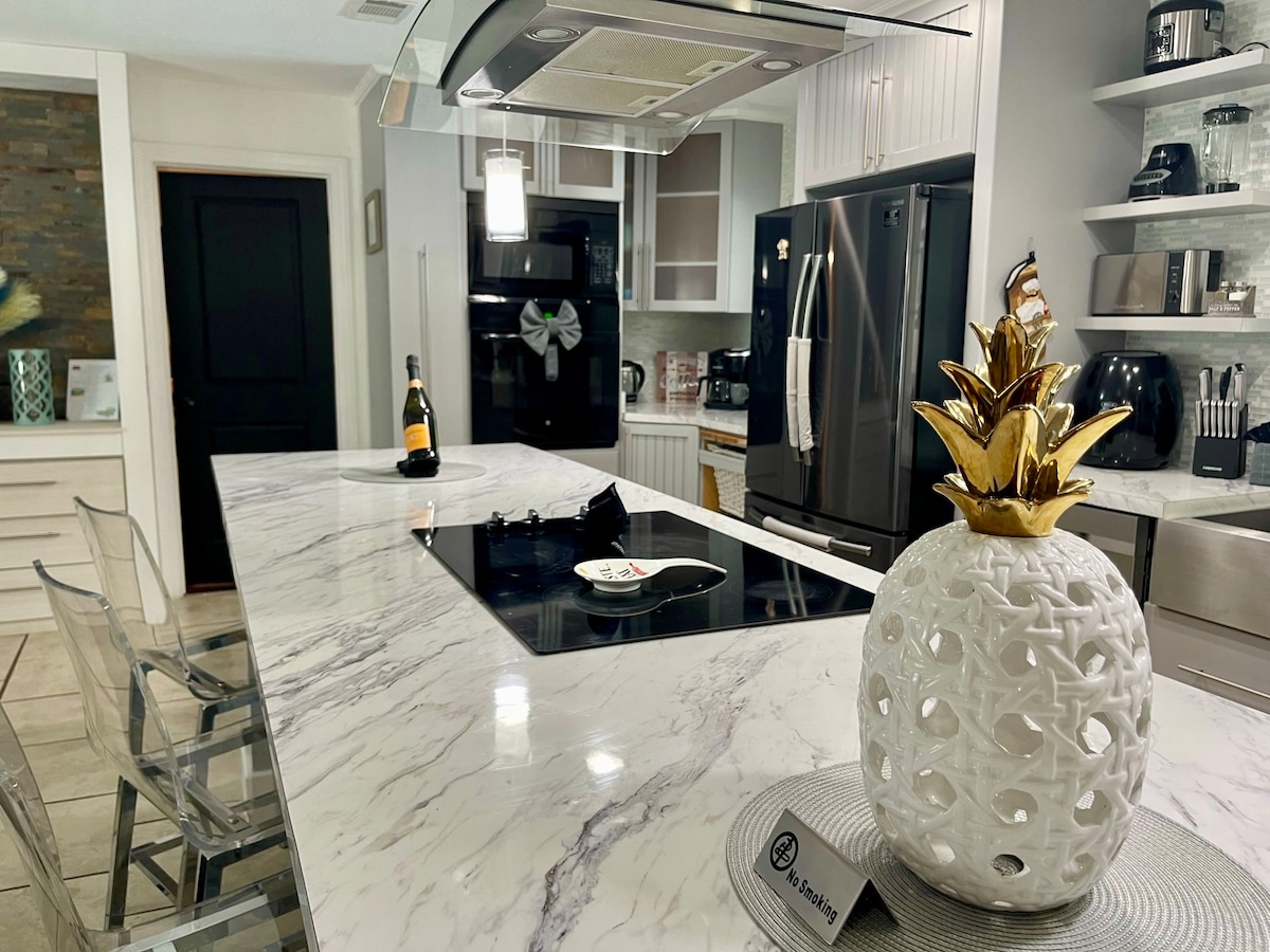 Encuentra la felicidad en nuestro paraíso de Kissimmee, donde la moderna villa cuenta con piscina de agua salada, espaciosas salas de estar y encantadoras habitaciones temáticas que prometen sueños mágicos. La suite principal ofrece comodidad con acceso directo a la piscina y un lujoso baño privado, lo que garantiza un santuario privado para la relajación. La villa se complementa con acceso a un gimnasio bien equipado y una piscina comunitaria. Perfectamente ubicada, nuestra casa es una puerta de entrada para explorar lo mejor de Orlando, desde los parques temáticos hasta las costas.