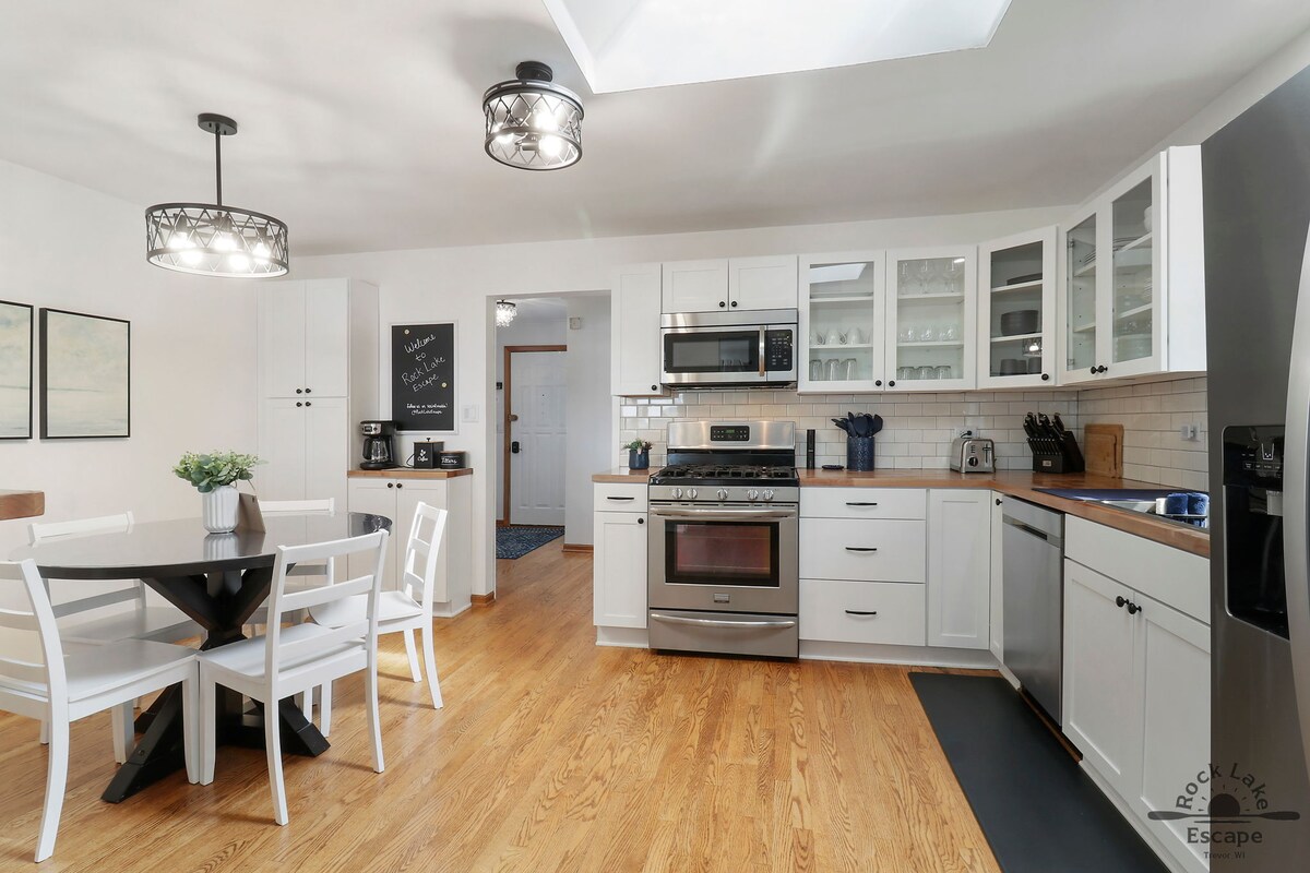 Bienvenido a esta serena villa frente al lago en Ginebra, Wisconsin, un refugio para la relajación. Este refugio de un dormitorio de diseño elegante está perfectamente ubicado a orillas del lago de Como, ofreciendo una mezcla de encanto rústico y comodidad moderna. Las paredes de ladrillo real y la acogedora chimenea crean un ambiente cálido y acogedor, proporcionando recuerdos inolvidables en este hermoso entorno de Wisconsin. Las leyes locales requieren que todos los nombres y direcciones de los huéspedes se proporcionen antes de la llegada.