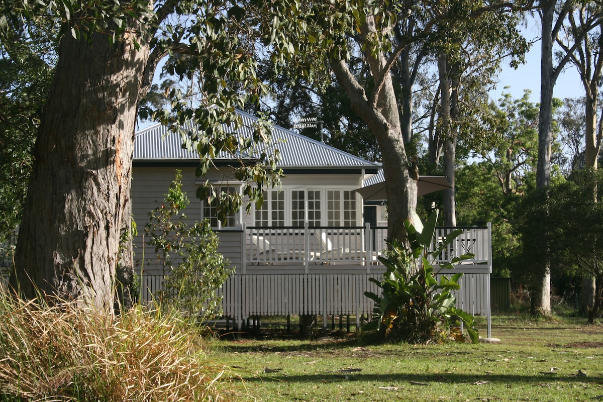 Ubicado en una propiedad de 50 acres en Noosa Hinterland, a solo 30 minutos de la playa principal de Noosa. Esta pintoresca cabaña blanca es lo último para una escapada privada en pareja con cama tamaño king de lujo y baño / ducha con patas en la terraza, perfecta para una copa de vino al atardecer. Running Creek con un hoyo de natación, presas y un poco de ganado amistoso deambulando. Glamping con cocina, refrigerador y estufa Kooka de 1930 en la terraza. También una parrilla. TV en el interior. Disfruta de una fogata por la noche. Se admiten mascotas.