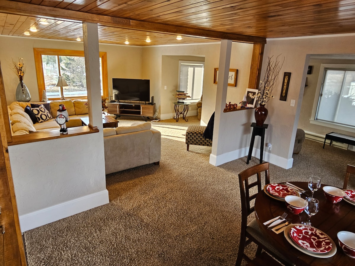 Relájate y desconecta en esta acogedora casa de campo en el río Wisconsin con unas vistas fantásticas. Disfruta del parque justo al otro lado de la calle con pesca, un pabellón de picnic, playa y parque infantil para tus hijos. El embarcadero público está a solo una manzana de distancia. Lavandería completa y cocina con encimeras de cuarzo que te hacen sentir como en casa lejos de casa. Muchos restaurantes y bares locales a poca distancia en coche, así como catas de vino y 2 estaciones de esquí. Se proporciona una cafetera Keurig y una parrilla de propano. TV por cable y wifi.