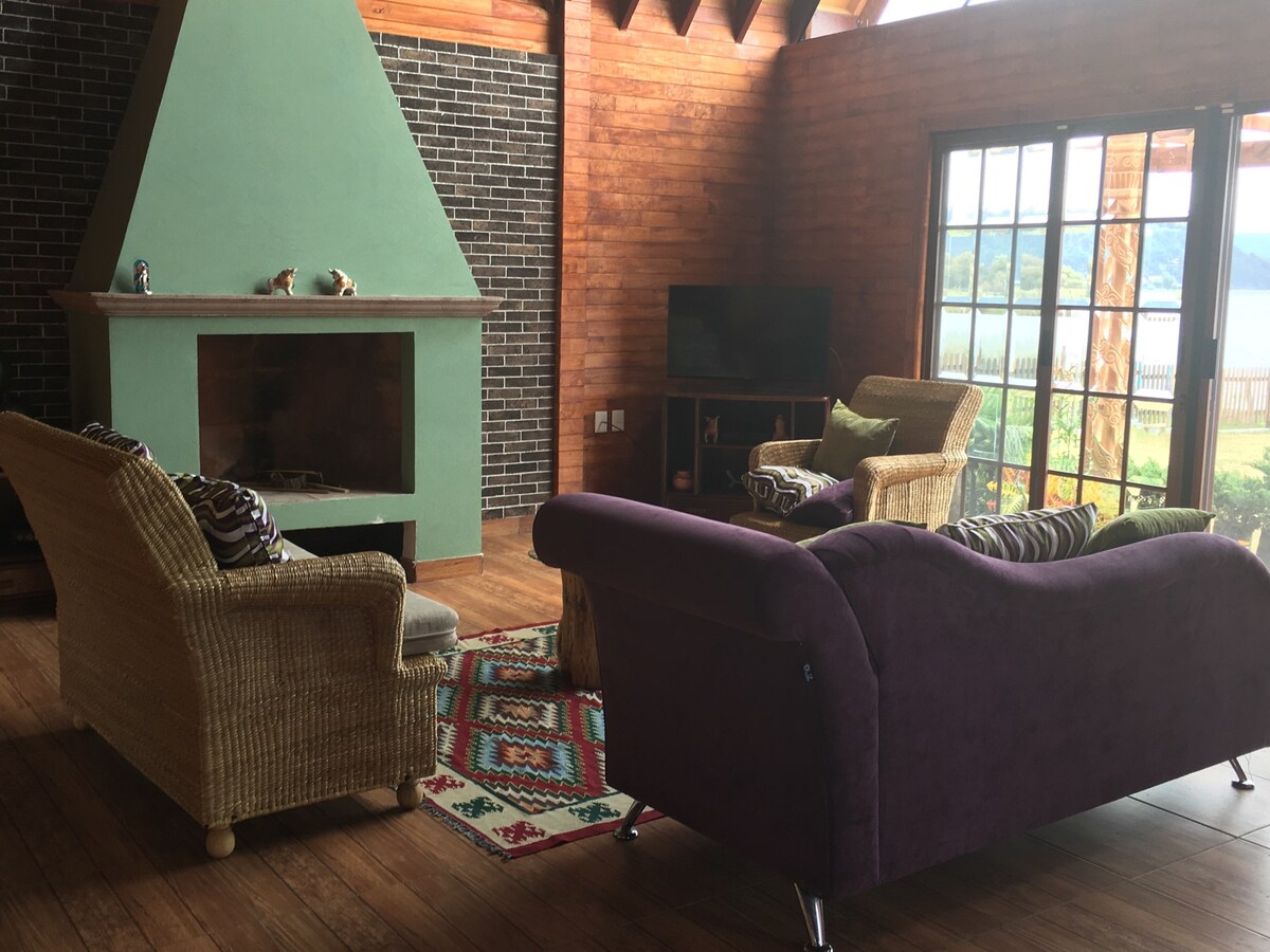 Relájate con toda la familia en este alojamiento donde la tranquilidad se respira. Ideal para grupos entre 6 a 8 personas. Cabaña de madera con una impresionante vista al lago. Disfruta de los mejores amaneceres. La cabaña esta totalmente habilitada, pero se esta trabajando en la áreas verdes y acceso al lago, por lo que hay materiales de construcción al exterior de la cabaña y no se encuentra habilitado el exterior. Por fuera esta un voladero, peligroso para niños sin supervisión.