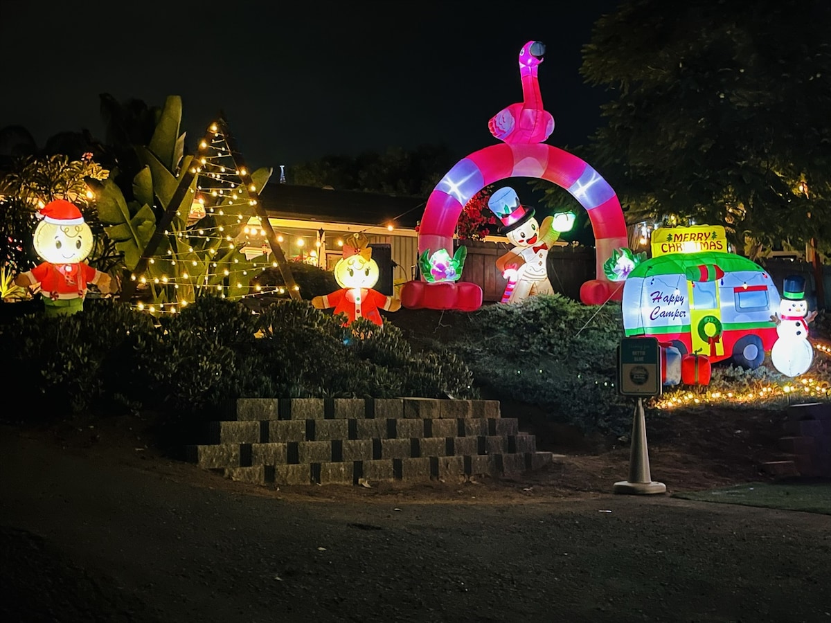 Escápate a las montañas de San Diego y entra en un espacio de vida privado, tranquilo y bien amueblado con mucho espacio para relajarte y disfrutar del estilo de vida de California. Contempla las vistas panorámicas de El Capitán y la cordillera de Cuyamaca mientras disfrutas de tu bebida favorita alrededor de la hoguera. California te espera mientras paseas hacia el este hasta las montañas y el desierto, o hacia el oeste hasta las playas y los centros comerciales. Legoland, Seaworld y el parque acuático Sesame Place están a poca distancia en coche.