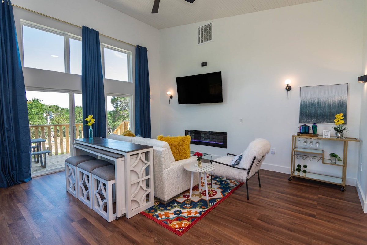 Vuelve a conectar con la naturaleza y sumérgete en la región montañosa en el inolvidable Hideaway, a solo 30 minutos de Waco. Esta minicasa ofrece una sala de estar interior totalmente equipada, así como una bañera de hidromasaje de lados suaves (temperatura regulable durante todo el año), cubierta y fogata para disfrutar de la belleza natural de las vistas de la ladera y las estrellas nocturnas. The Hideaway ofrece aislamiento sin dejar de estar cerca de una bonita ciudad de Texas, que ofrece lo mejor de ambos mundos. *Para grupos más grandes, envía un mensaje sobre el alquiler de varias cabañas