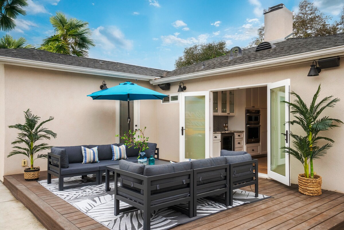 Gran patio trasero, a poca distancia a pie de tiendas, cerca de Disneyland