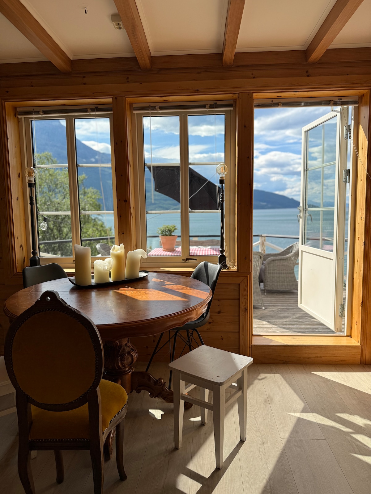 Acogedor "granero" entre el fiordo y las montañas.