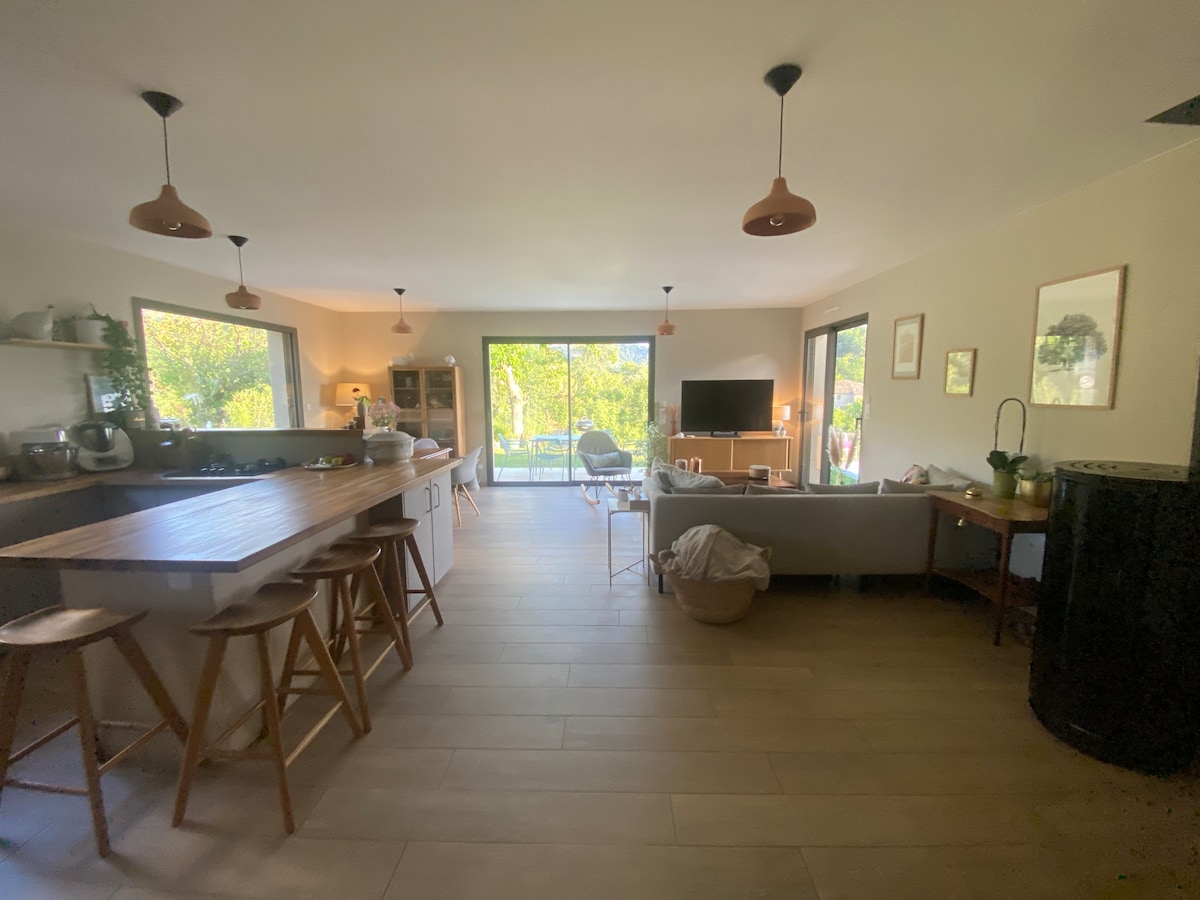 Villa, construcción reciente de 94 m², muy buen nivel, vistas abiertas e impresionantes a la naturaleza, en una zona residencial tranquila. La casa climatizada, incluye: - 3 dormitorios - Gran sala de estar de 40 m²: cocina equipada, zona de estar con TV - Baño (ducha + lavabo) La gran sala de estar se abre a una terraza de 20 m2 orientada al sur